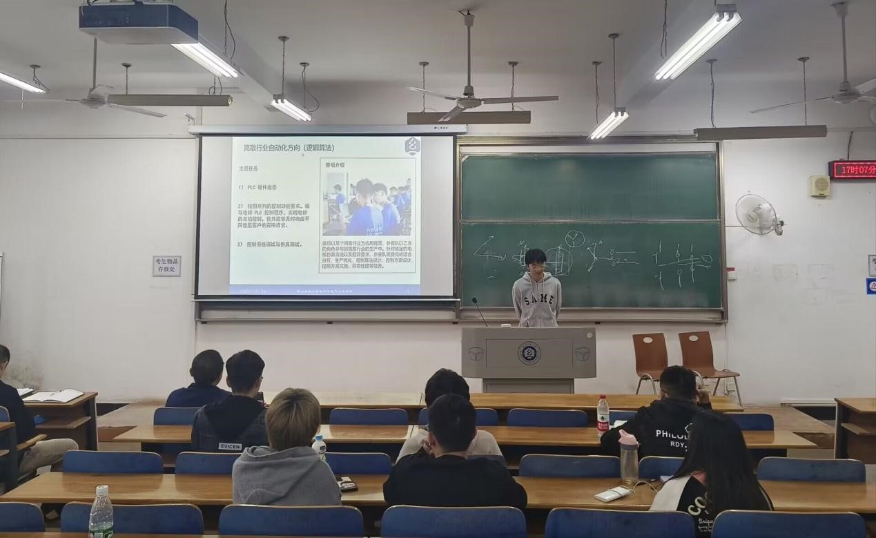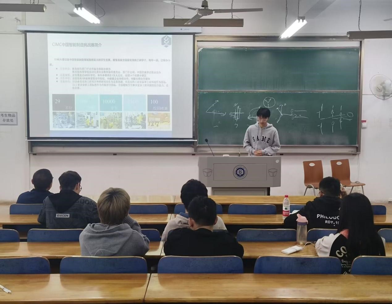 在YG03-215举行了第100期本科生论坛,电气11901班蔡裕杰分享了CIMC中国智能制造挑战赛经验。