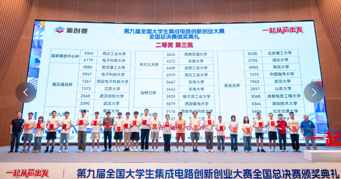 全国大学生集成电路创新创业大赛是国内集成电路领域最具规模、最具影响力的高校赛事,是中国高等教育学会全国高校竞赛榜单唯一入榜集成电路专业赛事。第九届赛事于2025年1月启动,共分为4大赛道,11个技术方向,25个杯赛,覆盖集成电路全产业链,报名队伍超过7400支,参赛师生逾20000人(其中硕、博研究生占比约30%),参与高校500余家(其中,C9院校、示范性微电子学院覆盖率达100%,985院校覆盖率超90%)。经过西南、华北、东北、华中、华东、华南、西北七大分赛区选拔,来自162所高校的600余支队伍晋级全国总决赛。