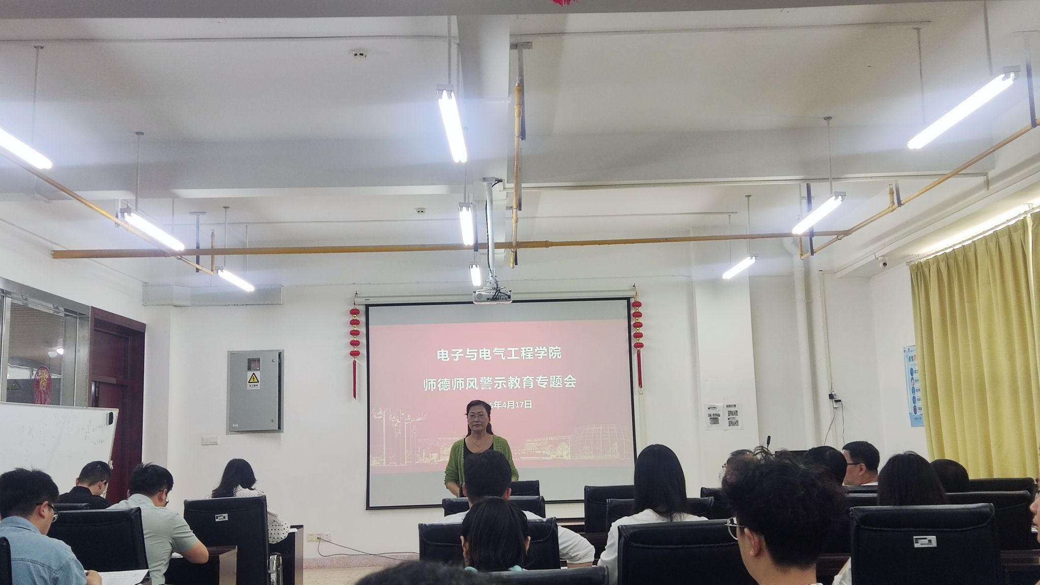 为深入贯彻中央八项规定精神学习教育,切实抓好教职工思想政治和师德师风建设,4月17日下午,女同