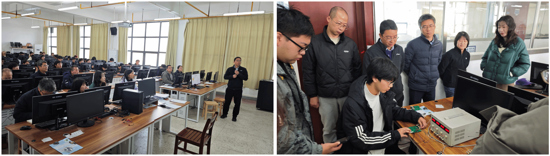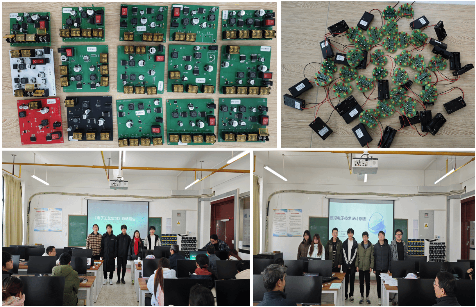 12月19—20日,为期两天的“模拟电子课程设计”与“电子工艺实习”验收工作在A5010多媒体教室顺利举行。此次验收工作旨在全面检验同学们在模拟电子课程设计、电子工艺实习中的学习成果和实践能力。首先,由李颂战老师向同学们详细讲解了本次课程验收的具体流程,涵盖了从企业参观实习、电路板绘制、电路板软件仿真、电源转换板的焊接制作、电源板的调试与测试,到总结报告的撰写等多个方面。