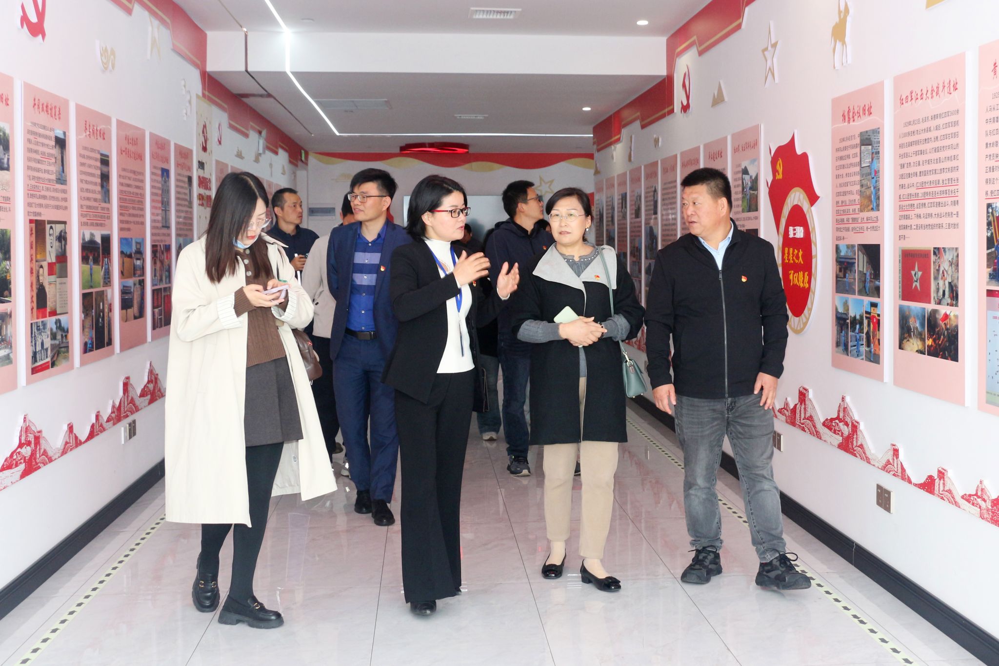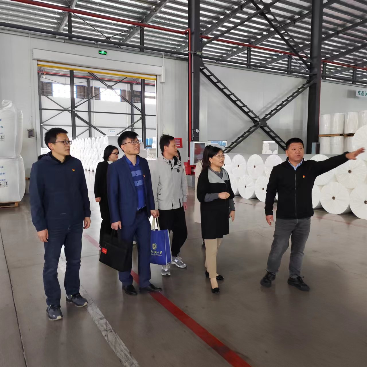 活动伊始,张红鑫一行走进企业生产车间,实地参观防护面料生产流水线,详细了解企业生产工艺、产品应用领域与行业发展现状,直观感受民营企业精益求精的实业精神。随后,走进公司“红色文化馆”,馆内通过详实的图文史料、鲜活的历史场景,沉浸式重温红军长征的壮阔历程,深切感悟革命先辈坚定的理想信念与不屈的奋斗精神,现场浓厚的红色文化氛围,让在场党员深受触动与教育。