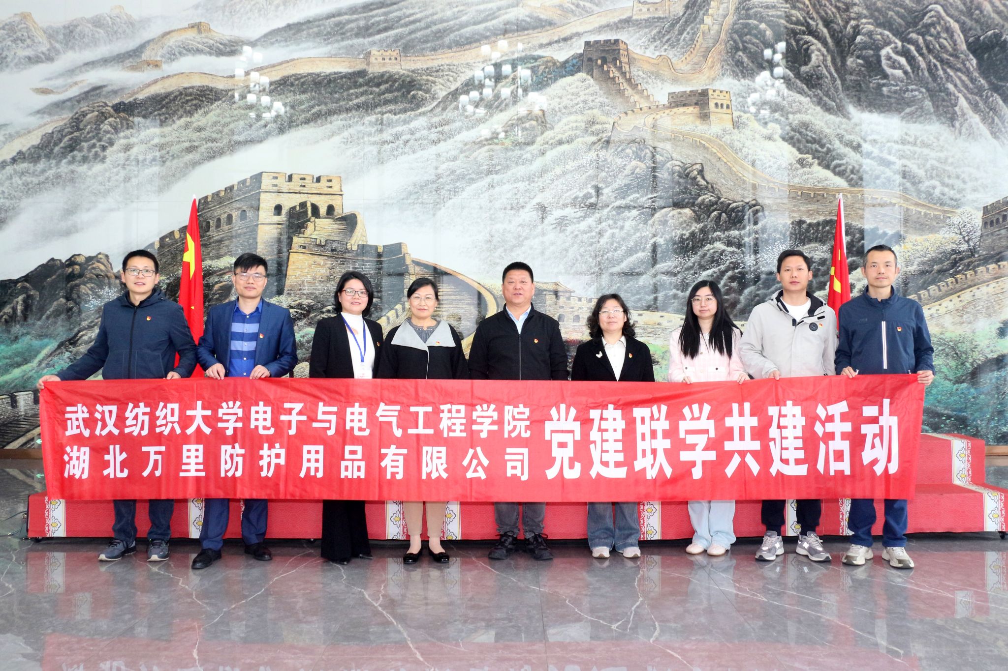 与湖北万里防护用品有限公司组织开展党建联学共建活动。仙桃市经信局党组成员、总工程师李燕子,女同