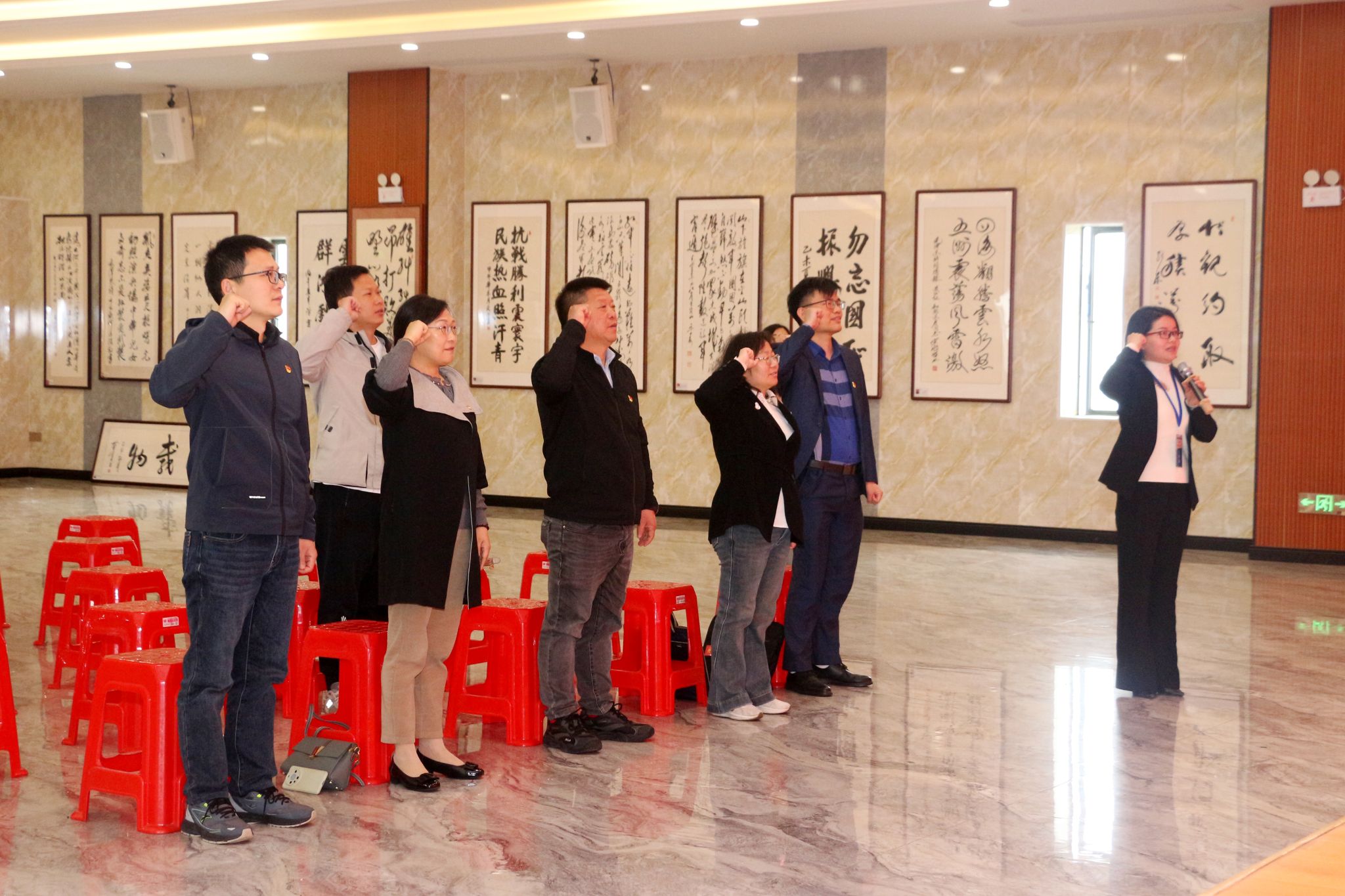 参观结束后,全体党员面向党旗庄严宣誓,重温入党誓词,坚守入党初心,筑牢信仰根基。吴正勇对学院一行的到访表示欢迎,围绕企业发展历程、女同建设、产业布局规划及人才需求等方面作详细介绍。交流座谈中,双方围绕党建共建、人才培养、产学研融合、实践基地建设等内容深入交流,畅谈合作思路,凝聚发展共识。