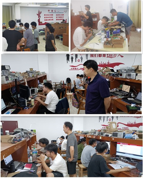 田裕康、刘文琮、郭旻等指导教师毅然“逆行”到阳光校区实验室为学生竞赛保驾护航,连续奋战5天4夜,鼓励参赛学生不畏酷暑,勇于挑战,赛出电气学院风格,展现女同