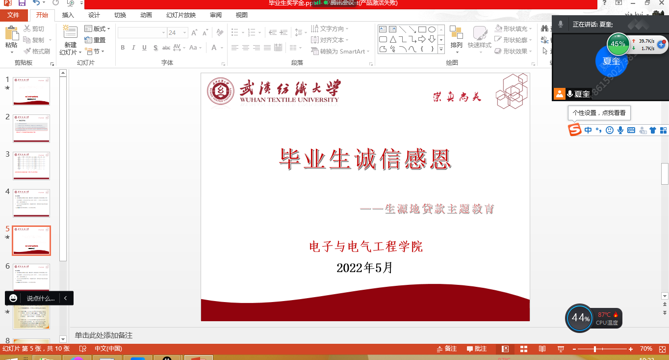 在腾讯会议平台召开毕业生诚信感恩教育之生源地信用助学贷款政策宣讲会,毕业生辅导员夏奎老师主讲,2018级各班班委、生源地贷款学生参加了宣讲。