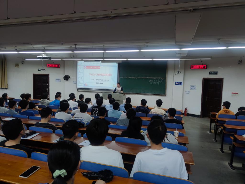 在崇志楼T102教室面向2022届毕业生开展“毕业生心理问题及其调适”专题心理健康教育活动,此次辅导由2022届毕业生辅导员夏奎老师主讲,全体在校毕业生参加了此次辅导。