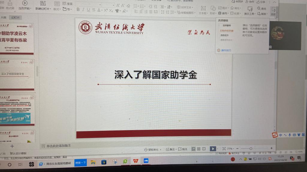 采用线上会议与班级宣讲相结合的方式,开展以“讲好资助故事,强化育人成效”为主题的奖助政策和典型事迹宣讲活动。