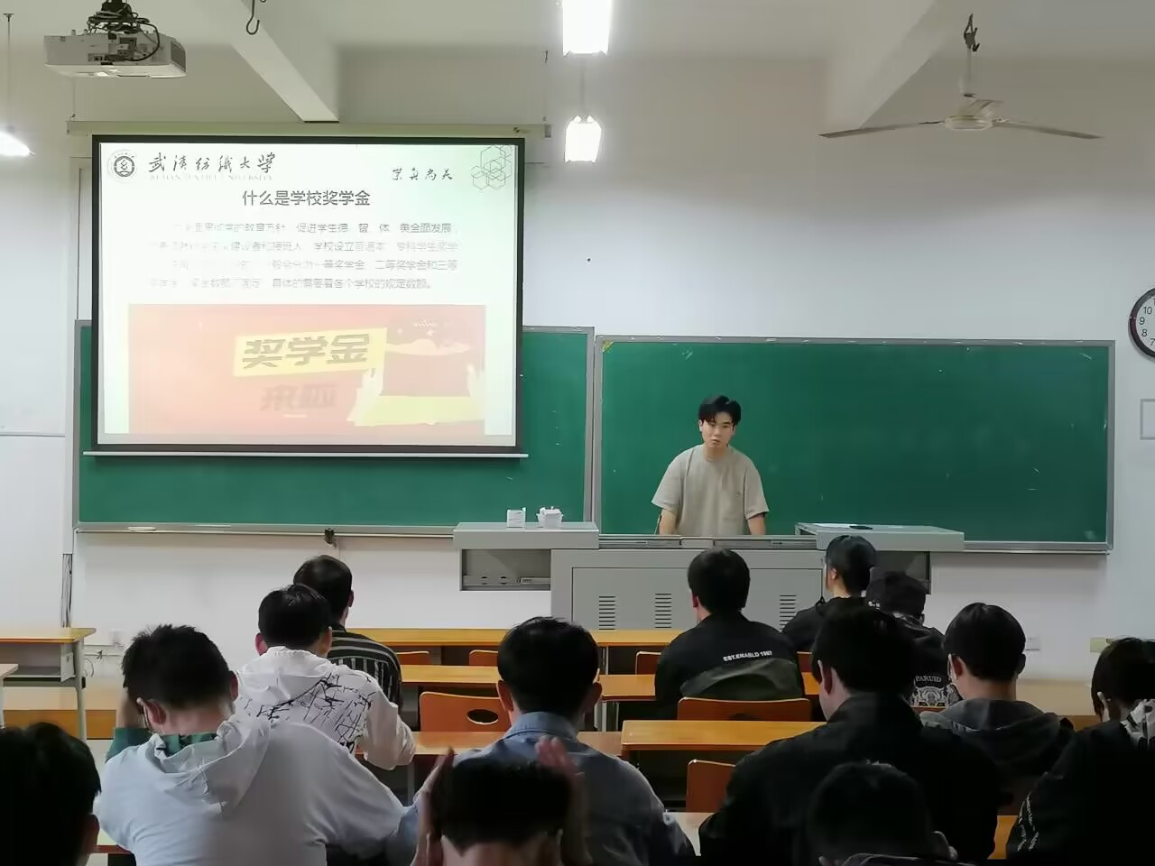 由获得国家奖学金的同学组成宣讲团队,深入学生班级,结合自身专业实际,分享学习获奖经验,并以身边人的身份解答同学们关于奖学金政策方面的问题,鼓励同学们自信自强、勇毅前行,努力提升专业素养,为全面建设社会主义现代化国家、全面推进中华民族伟大复兴而奋斗。