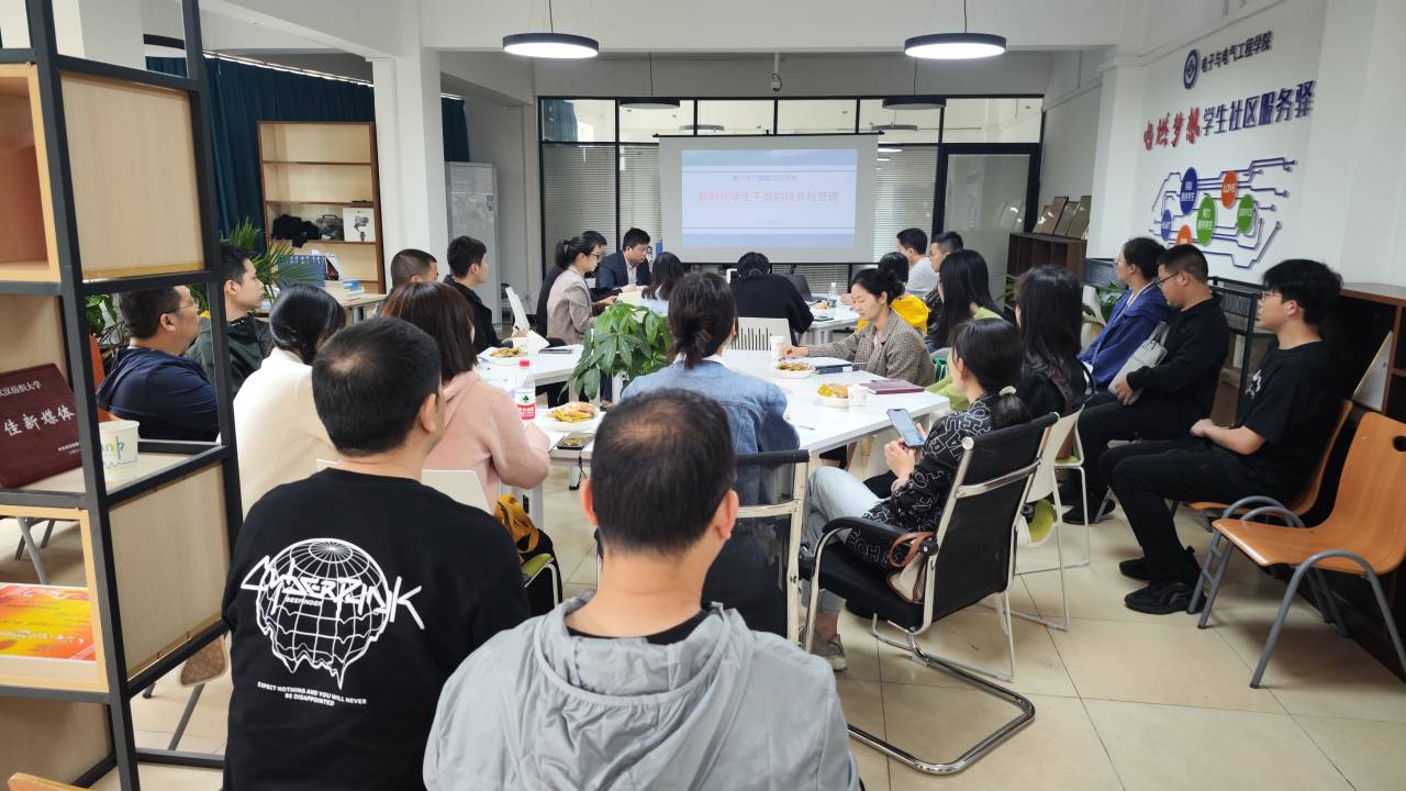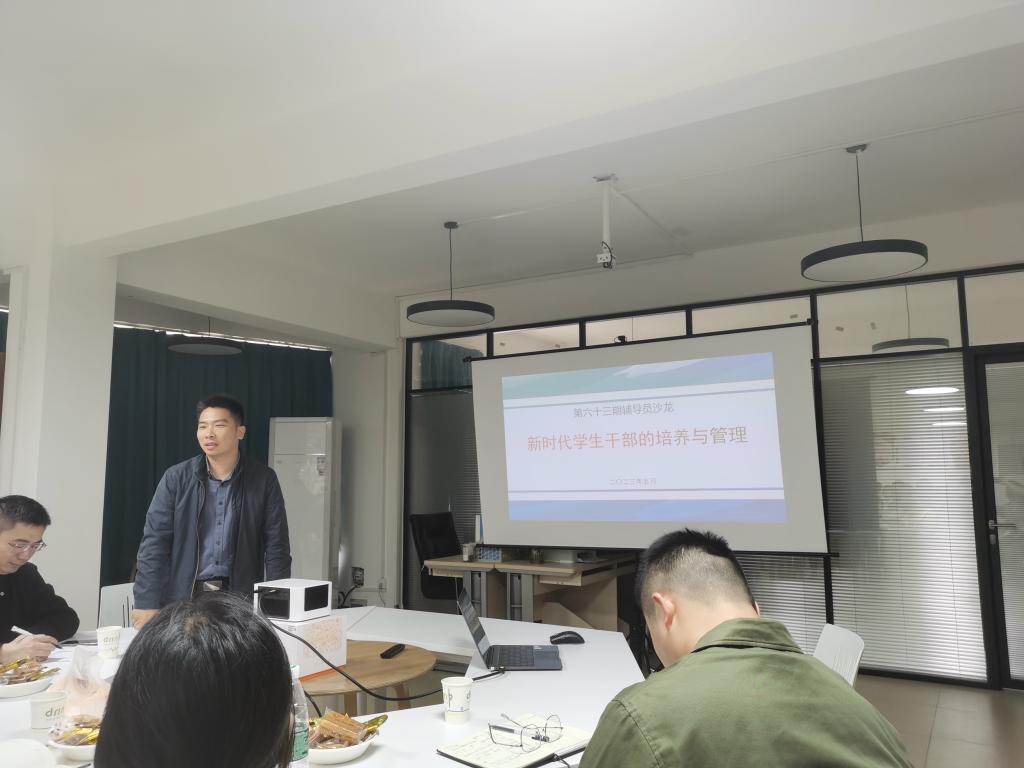 涂亚腾老师以《新形势下工科学生干部培养的问题及对策》为主题,结合工科学生干部的特点,提出加强学生干部的思想建设,用好网络,加强学生干部的日常培训等措施加强学生干部培养。数理学院方媛老师以《朋辈领航,星火聚光——学生干部的处境和发展分析》为题,提出深化职责认知,提升业务能力;注重能力培养,选拔后加强培养和指导;给予资源倾斜等措施提升学生干部的能力和素养。机械学院方林老师以《从“新”引航——大一新生班委选拔培养的几点思考》对新生班委的选拔任用提出思考,他总结为说给班委听、启发班委想、带着班委干、督促班委练,从而使新生班委克服“官”念,养成“团结、教育、服务”的工作作风,从而增加其战斗力和号召力。材料学院曾玉竹老师以《“05后”学生干部培养的新情况、新问题、新思路》对“05后”学生以及学生干部进行了分析,她认为辅导员老师是学生干部培养与管理的主导力量,选人比用人重要,培养比管理重要,过程比结果重要,人格魅力比行政指导重要。环境工程学院张宇航老师以《培养有责任意识的学生干部》为题,从强化角色意识、成才意识;培养责任意识、自律意识;培养服务意识、回馈意识等几个方面提出加强培养有责任意识的学生干部的方式方法。传媒学院汤若釴老师以《如何发挥学生干部在宿舍党建育人工作中的先锋作用》为题,探索学生干部在新时代学生宿舍党建工作新模式中的作用和现状,他认为构建“一室一廊一栋一中心”一体的党建育人主阵地,能有效提升学生干部在宿舍党建工作新模式中的作用和效果。