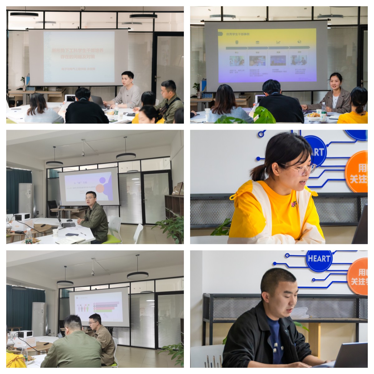本次沙龙,六位辅导员老师围绕“新时代学生干部的培养与管理”主题,结合所在学院专业特色和工作实践经验展开交流。女同
