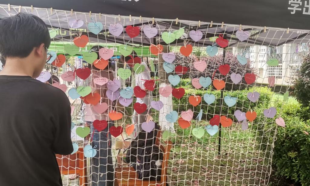 心理部于5月25日在一食堂开展了一场主题为“逐梦生长,向阳而生”的5.25心理健康活动,吸引了在校学生追随爱的步伐,开启美好心程。