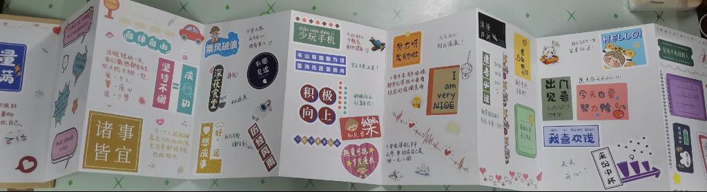 本次活动分为舒心小手册和逐梦分享墙两个部分。在舒心小手册环节中,同学们可以在手册中分享那些句句发自内心的感悟,从而传达一种惬意、阳光的心情。在淡蓝色带有草原气息的小手册上满载着他们对未来的向往和期望,这些小小的语句寓意着对美好生活的追求,同时也化解着日常生活中遭遇到的困扰和不快。