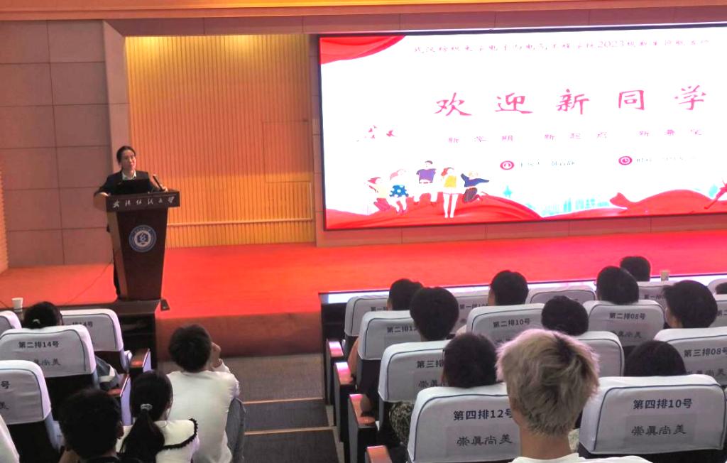 韩谷静从“何为大学”出发,阐述了大学教育在人才培养、科学研究、社会服务、文化传承创新和国际交流合作等方面的基本功能,对学院的历史沿革、学科实力、教育教学、创新创业、科研竞赛、升学质量作了全面、细致、严谨的介绍。她指出,在多年的教学与管理实践中,学院已形成了保障学生卓越成长、学有所获的体制机制和系列举措,电院学子在国内外大赛中屡获佳绩,毕业生前赴后继投身国家重点行业,服务国家重大战略需求。她提出,希望2023级新同学们能继续传承“经天纬地 自强不息”的大学精神,秉承电院人勇立时代潮头的优良传统,勤奋笃学、躬行实践、心怀家国、志存高远,在求学之路上问鼎高峰、尽览群山,在纺大成就更好的自己。