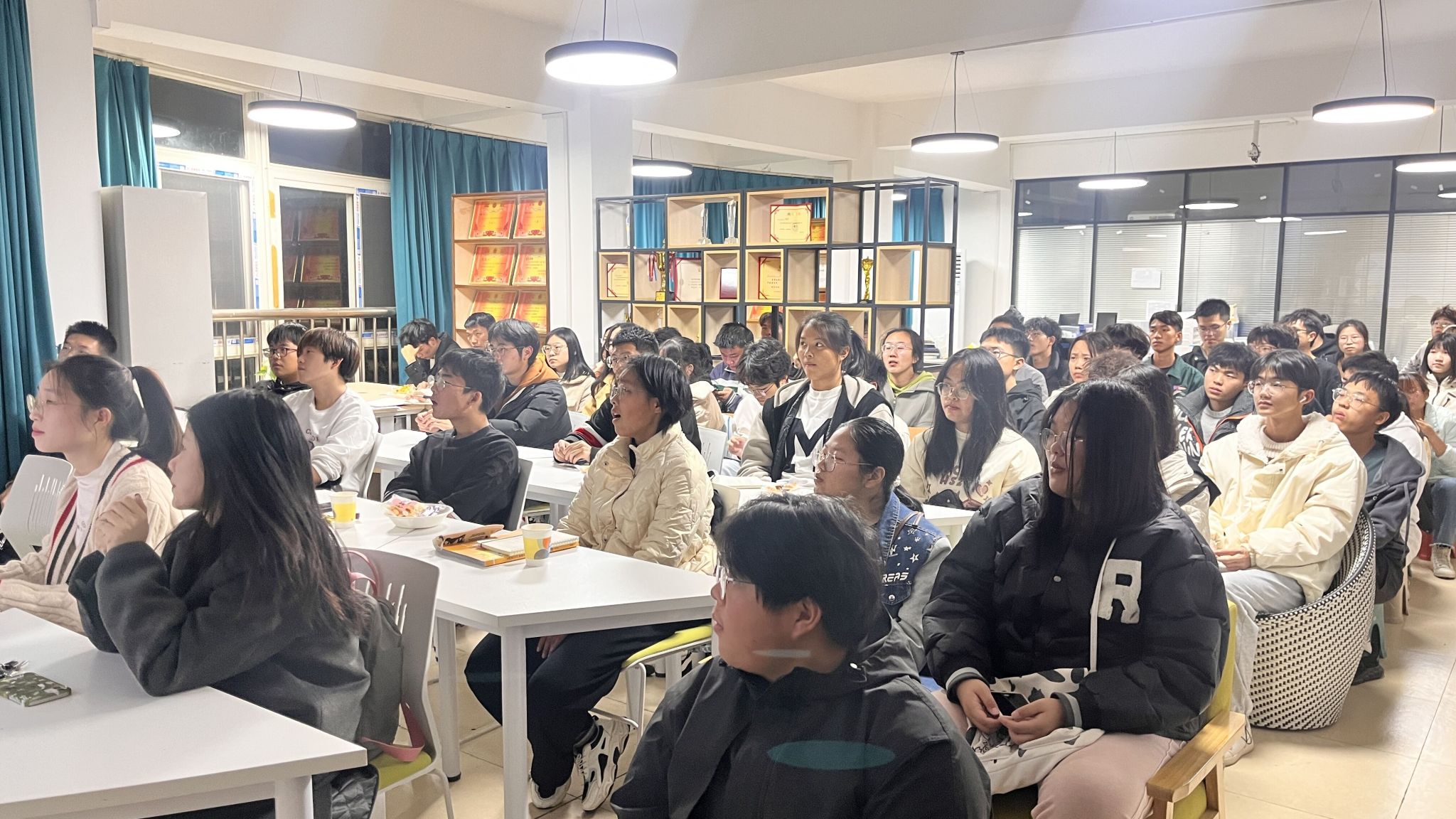 承办的第1期“书香纺大·纺大群星面对面”活动在8栋“电燃梦想”一站式学生社区服务驿站顺利举办。本期活动邀请了3位2022-2023学年国家奖学金获得者分享学习经验,80余名学生参加。
