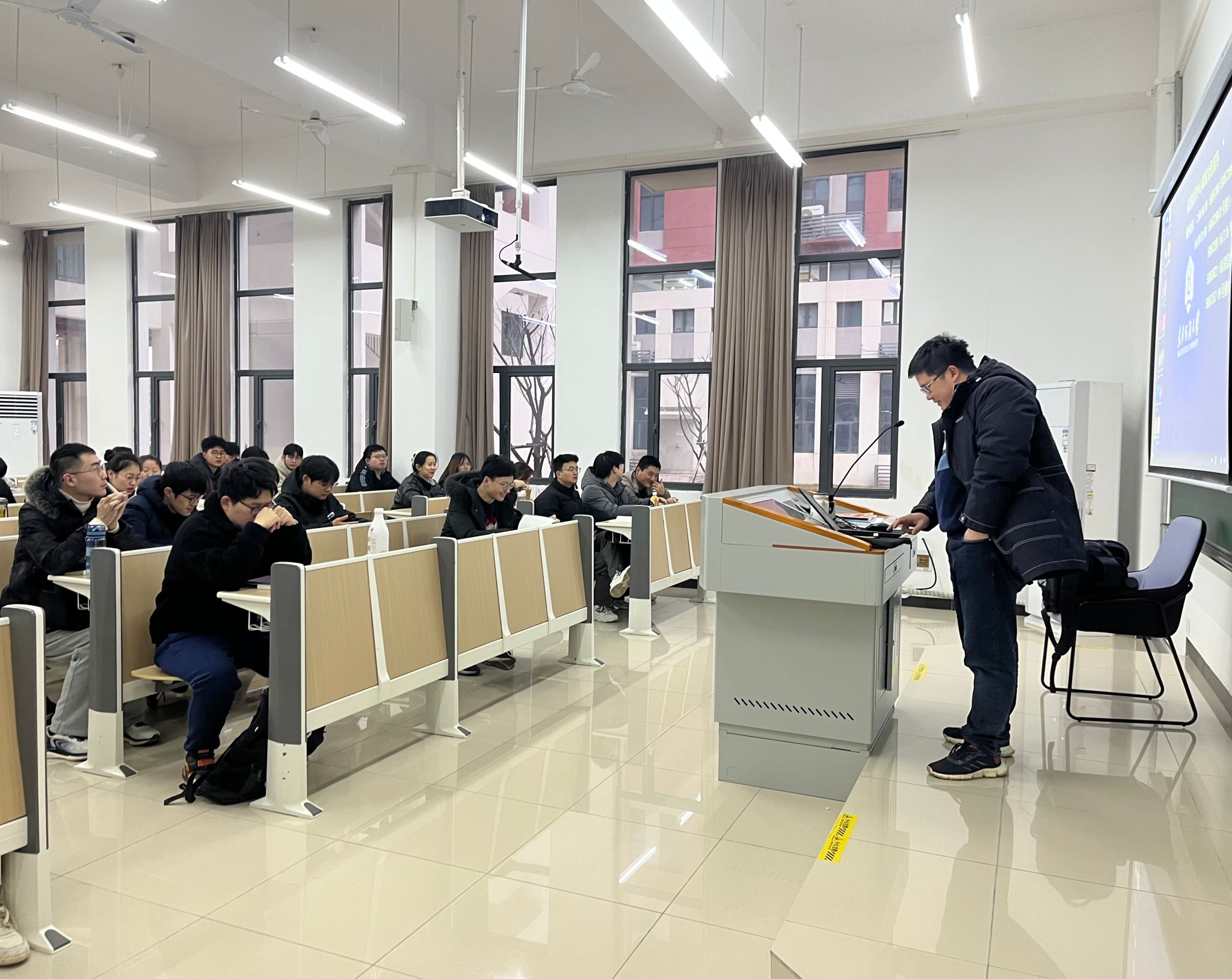 春雪降临给寂静的校园带来了生机,2月28日,是学校正式上课第一天,教师和学生怀着饱满的热情走进教室,迎接新学期的到来。为着力抓好新学期的教育教学工作,保证教学质量,上午7点45分,学院巡课小组在院长刘侃的带领下深入课堂进行教学检查,指导教学工作,了解教师教学、学生出勤、教学设施、教学保障等情况。