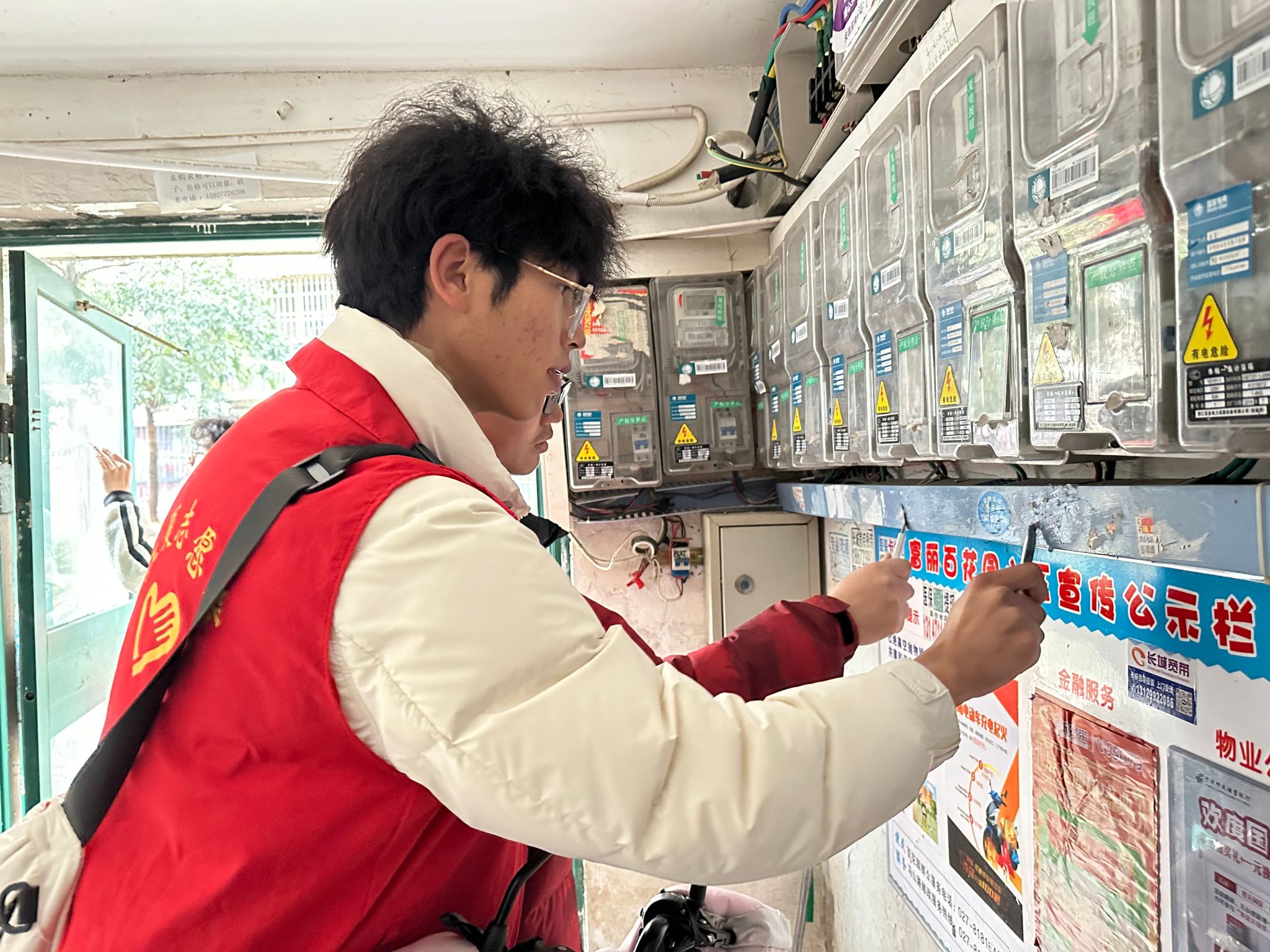 在社区工作人员指导下,青年志愿者们身穿红马甲,手持铲刀、喷水壶等工具,开始对居民楼内的“牛皮癣”进行清理,大家认真细致地铲除楼栋入户门、墙面等地方的小广告,做到不留痕迹,同时,向过往的居民们进行文明意识宣传,倡导共建共享清洁家园。志愿者们团结协作,不怕脏不叫累,挥洒汗水,社区面貌焕然一新,引得小区居民们纷纷点赞。