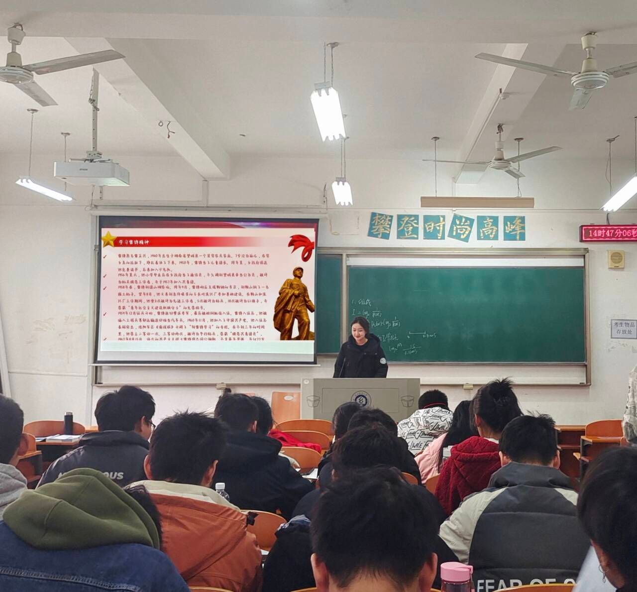 电气12101班王海伦讲述了雷锋同志是如何帮助他人,平时舍不得喝一瓶汽水的人却将自己存下的积蓄都捐献给了社会,号召青年团员们做一个关心集体,热心助人的新时代好青年。
