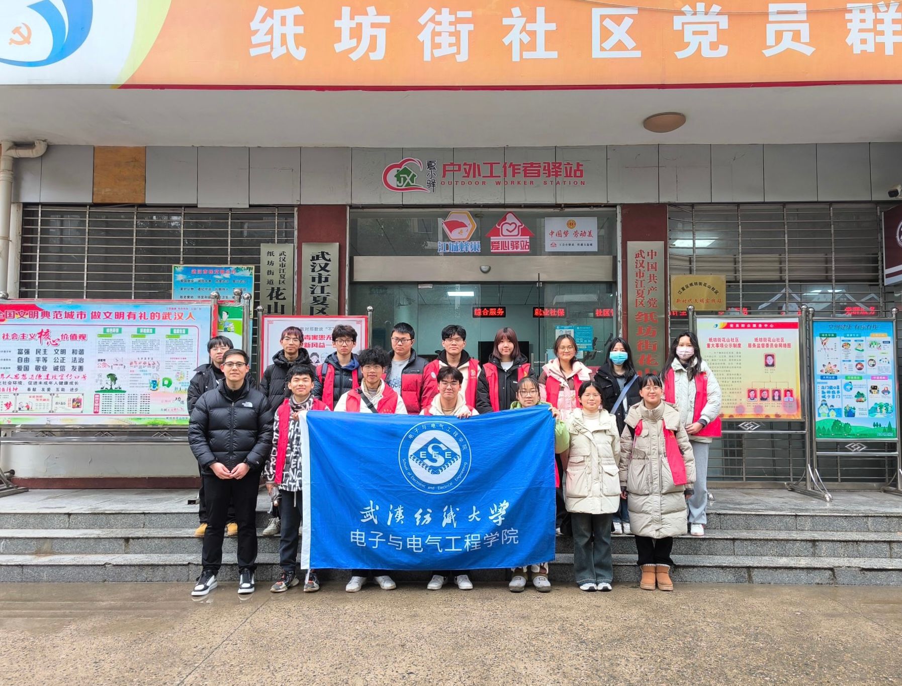 团委组织学院团支部成员前往纸坊街花山社区居委会进行社区志愿服务活动。