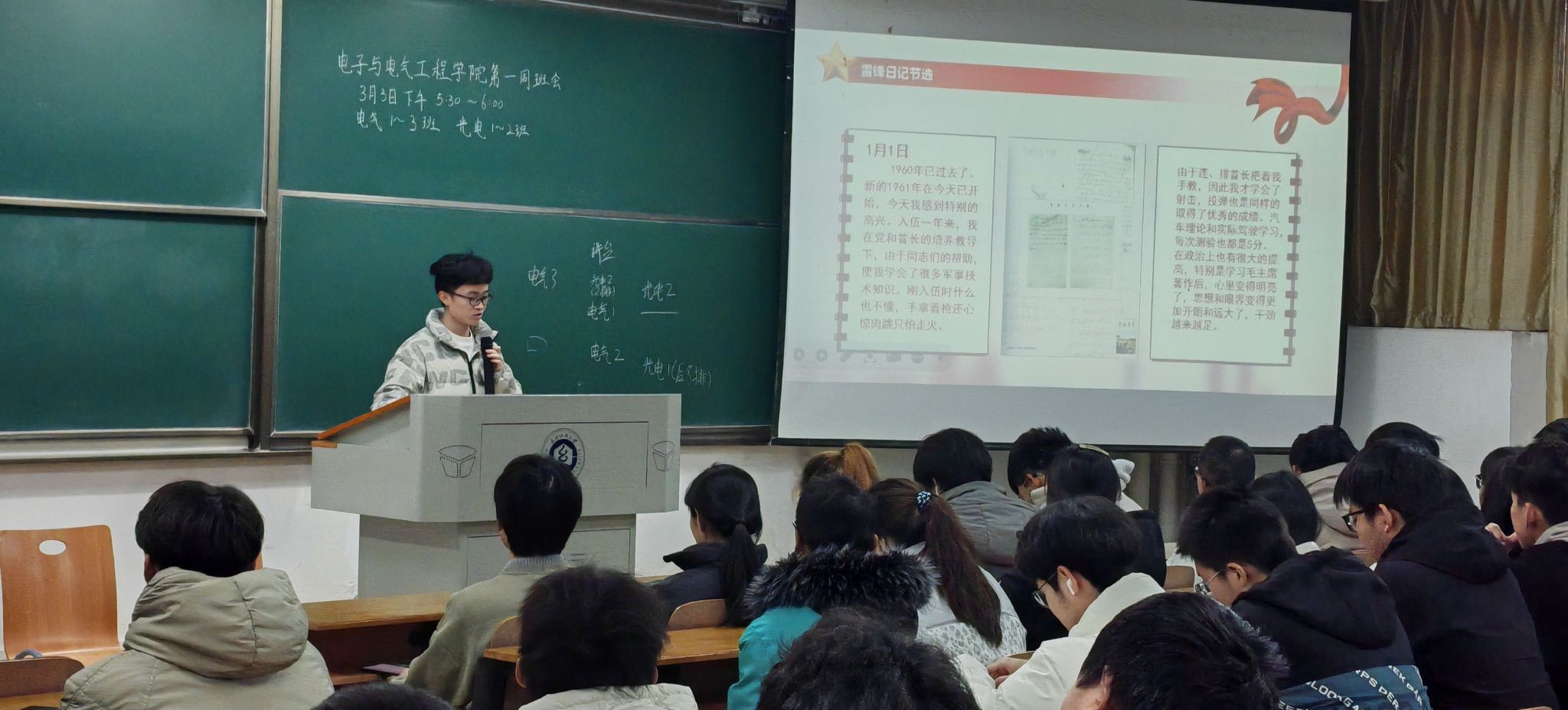 电信12202班喻炎详细讲解了雷锋精神传递至今的原因,鼓励大家践履笃行,从雷锋精神中汲取前进力量。