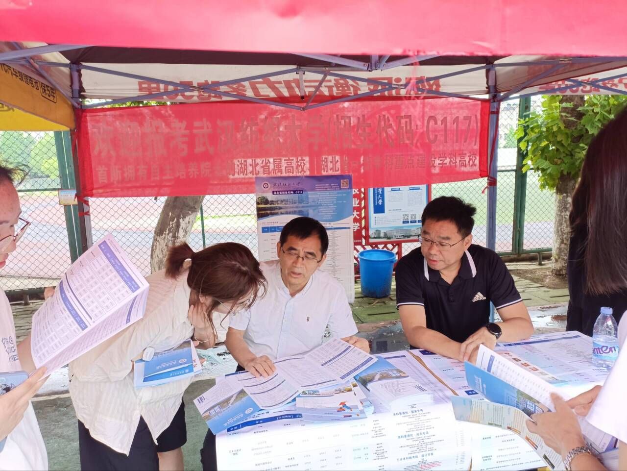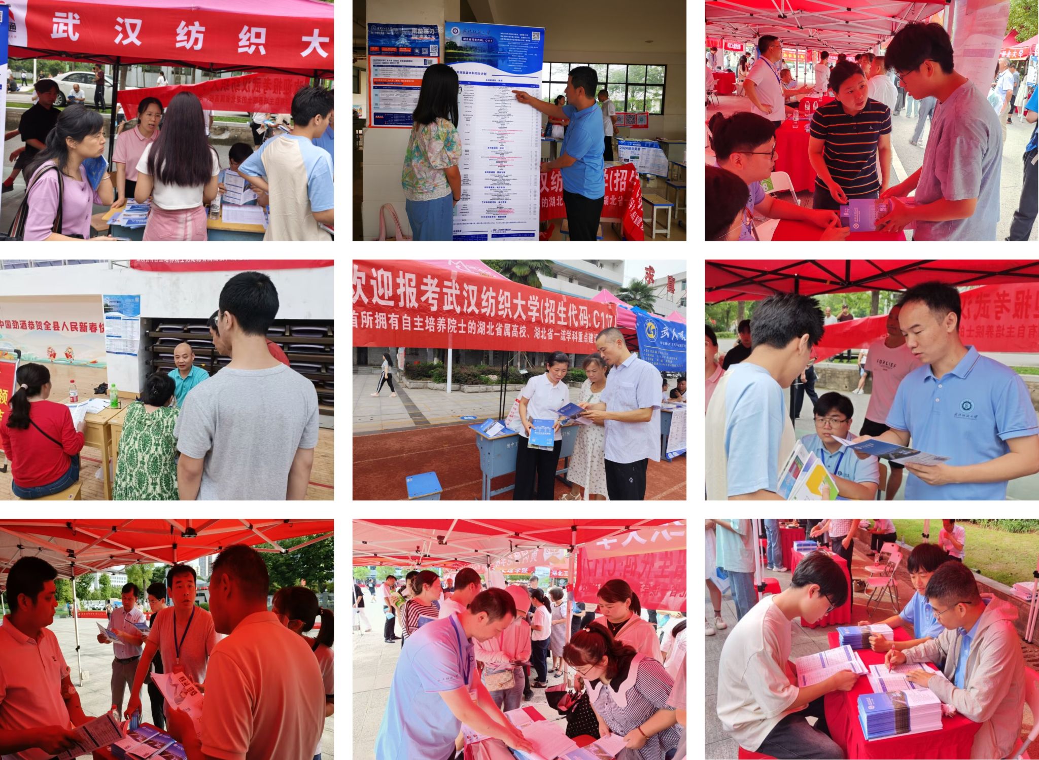 姜明华与生源中学校领导亲切沟通交流,介绍学校概况、招生政策、人才培养、专业优势和就业前景,感谢生源中学一直以来对学校招生工作的支持,为学校输送了大批优秀生源。在黄梅一中,他来到学校招生宣传咨询点,慰问现场咨询人员,并亲自进行招生咨询,接待家长和考生,向他们现场解读学校招生政策,进行答疑解惑,指导志愿填报。他强调,黄冈地区生源众多,招生宣传人员每到一所中学,都要讲好纺大故事,讲好招生政策,吸引更多的优秀学子来纺大学习,纺大会为每一位学生的成长成才创造更加优越的条件。