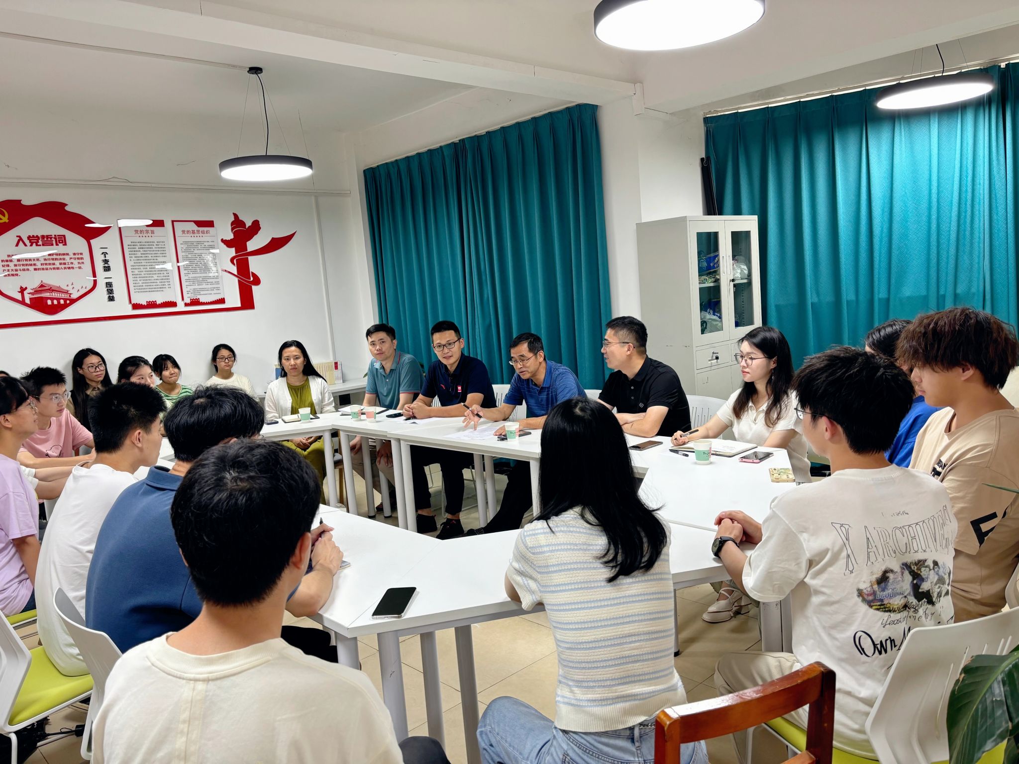 “电燃梦想”学生社区服务驿站,和结对党支部、结对班级、结对寝室以及结对学生开展座谈,与同学们亲切交流。学院班子成员、全体辅导员、学生代表参加结对活动。