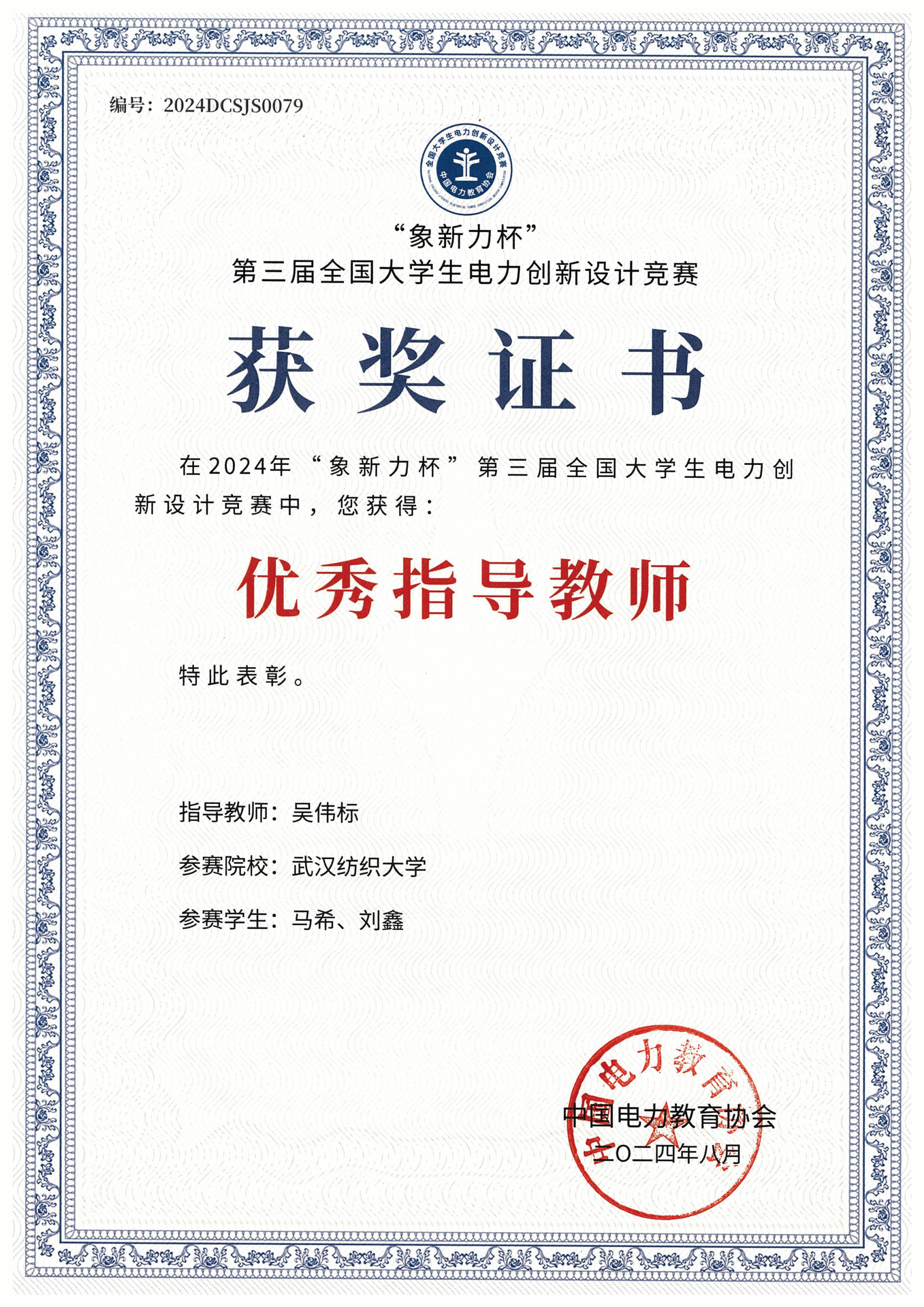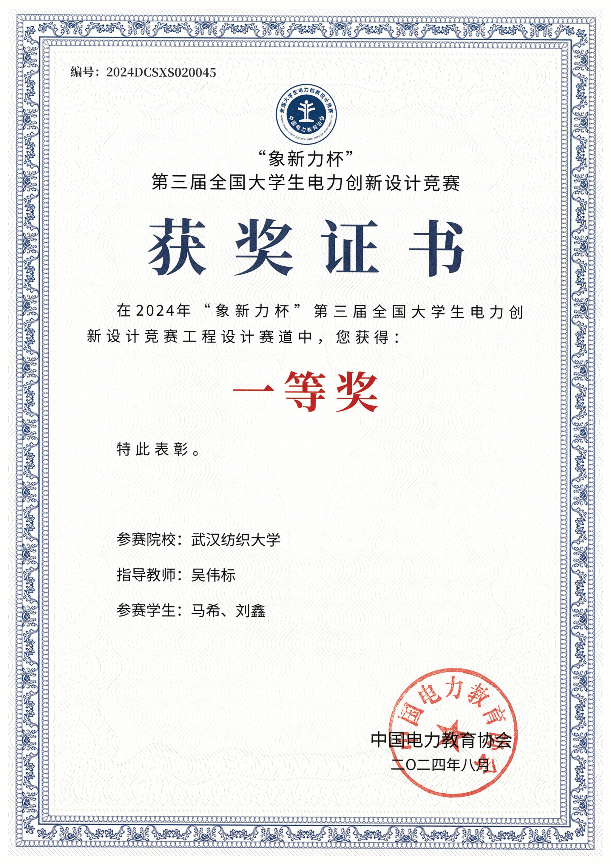 积极组织师生参加,在韩谷静、张明、朱文强、胡梦月、吴伟标等电气系老师们的齐心协力指导下,学生们认真备赛、全力以赴,最终电气系本科生马希、刘鑫荣获全国一等奖1项,电气系教师吴伟标获得优秀指导老师奖。