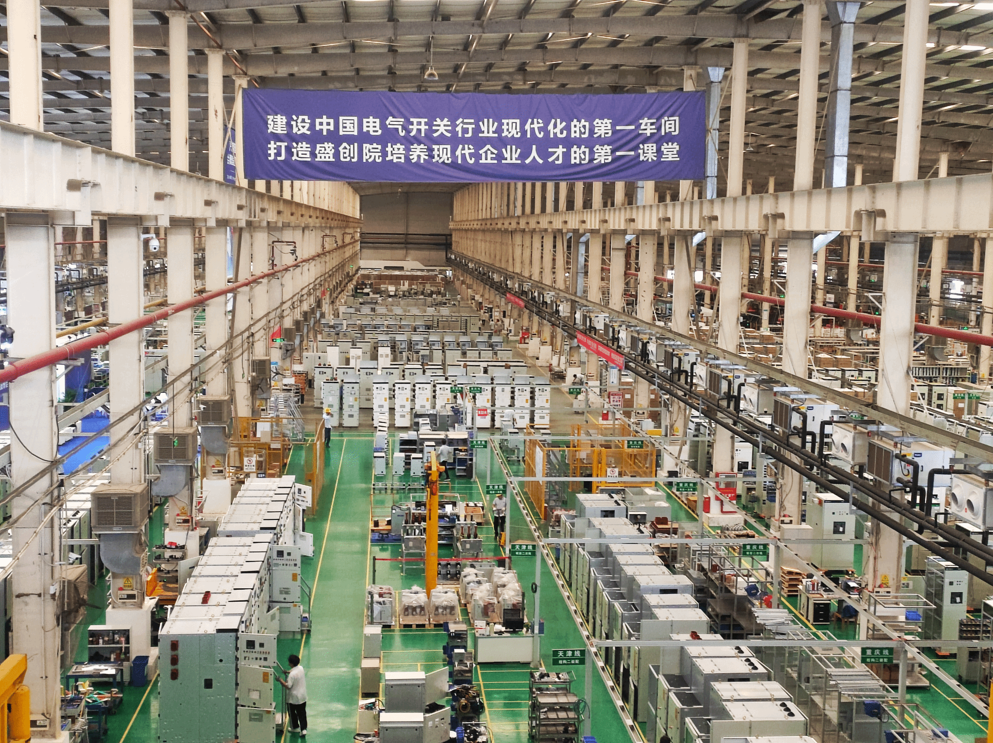 随后,学生们乘坐扶梯观看盛隆电气智慧工厂的生产线。所有电气设备摆放整齐、井然有序,工程师们也正努力调试设备,数字化调控设备可随时查看调试状态。这些体现了企业对智能生产、智能管控等环节注入了新的活力。同学们不由惊叹如何数字化调控如此庞大的生产线,深刻体会到科技创新的重要性,也为他们未来适应职业发展打下坚实基础。