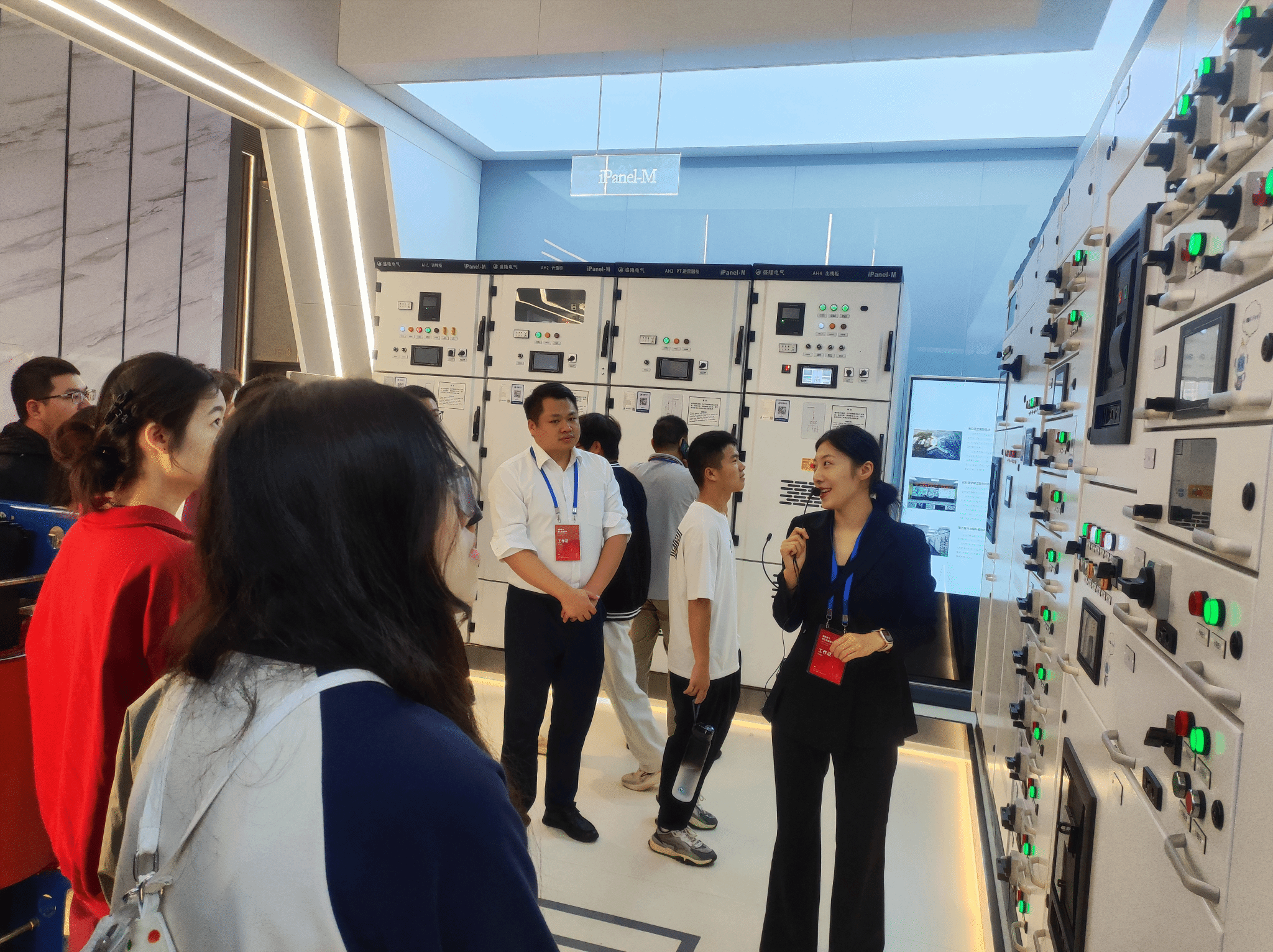 参观中,企业工程师演示盛隆电气自主研发的全球首款AI-iPanel智能配电柜与iDrip智慧物联网系统。智能配电柜可直接和运维人员语音交流,并提供设备的运行状态及建议。智慧物联网系统能用于智慧电力、智慧能源、环境安防楼控等诸多方面,实现多个子系统集中于一个平台进行管理。学生们第一次近距离感受到这些智能配电柜和物联网智慧系统,纷纷表示赞叹公司的创新实力。