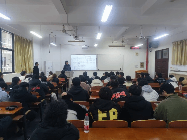 分享结束后,朱文强老师进行了总结发言。他表示,本科生阶段不应仅局限于理论知识的学习,更应投身于实际工程应用的探索实践之中,他倡导同学们在日常学习过程中,要善于发现问题、解决问题、总结问题,稳扎稳打,逐步稳固提升个人综合能力与素养。激励大一、大二的同学们积极参加竞赛,开拓视野,勇于挑战自我,力争在今后的各类学科竞赛舞台上斩获佳绩。
