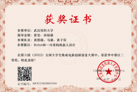 经过大赛初赛,电子与电气学院2020级电子信息工程专业的黄英达、邬继超、叶泽组成的笃行致远队和黄猎越、黄子佳、马谦组成的7天速成Robei队顺利入选华中赛区总决赛。在决赛过程中,赛况激烈,经过目PPT讲解、项视演示、专家提问等环节,两支代表队最终取得了优异的成绩。