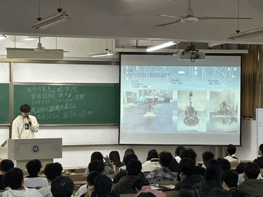 “目标明确是成功的第一步。”徐磊鼓励同学们尽早规划大学生活,制定切实可行的目标,并坚持为之努力。作为多次在学科竞赛中获奖的优秀学生,徐磊重点分享了他备战竞赛的经验与心得。他详细讲解了备赛过程中如何平衡学业与实践,如何组建团队、分工合作,以及面对困难时如何调整心态、突破瓶颈。他提到,参赛不仅是一次能力的考验,更是一次眼界的开拓,能够从中收获丰富的经验和成长。在学习方法方面,徐磊建议同学们注重基础知识的积累,善于利用资源,特别是在数据结构、算法、编程语言等领域下苦功夫,为参赛和学术研究打好基础。