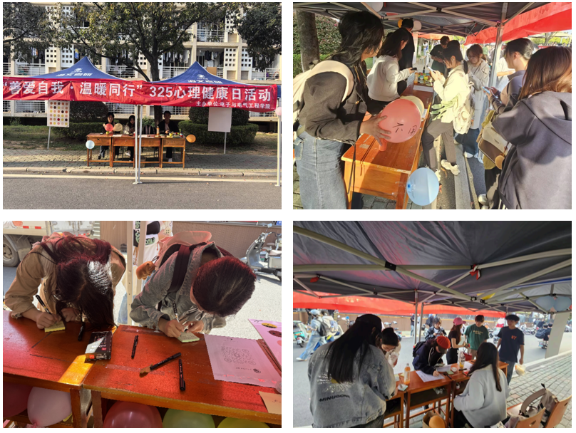 3月24日-25日,“善爱自我·温暖同行”325心理健康日活动正式举行,活动内容丰富多元,设置了互动体验、趣味游戏多个特色区域,旨在助力同学们释放压力、放松身心。在“心灵树洞——情绪漂流站”中,同学们或是匿名,或是实名写下遗憾、烦恼与快乐,投入“情绪漂流箱”后,随机抽取他人纸条并认真写下鼓励话语,让温暖在纸条间传递。在“友谊传递站”里,一张张写满赞美的“夸夸卡”,由工作人员随机派送,助力同学们打破社交壁垒,传递善意。