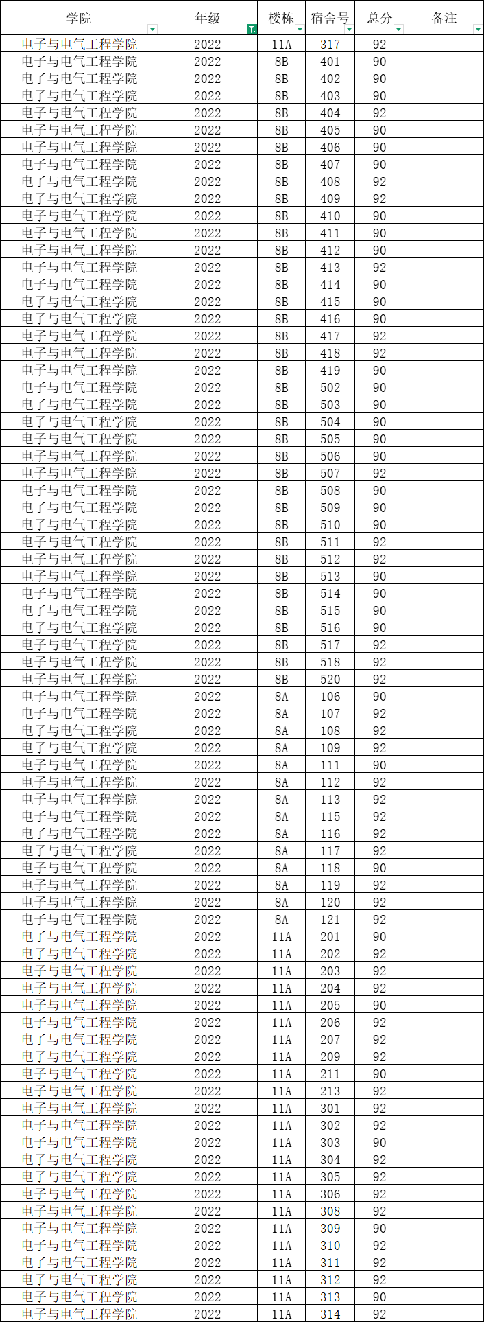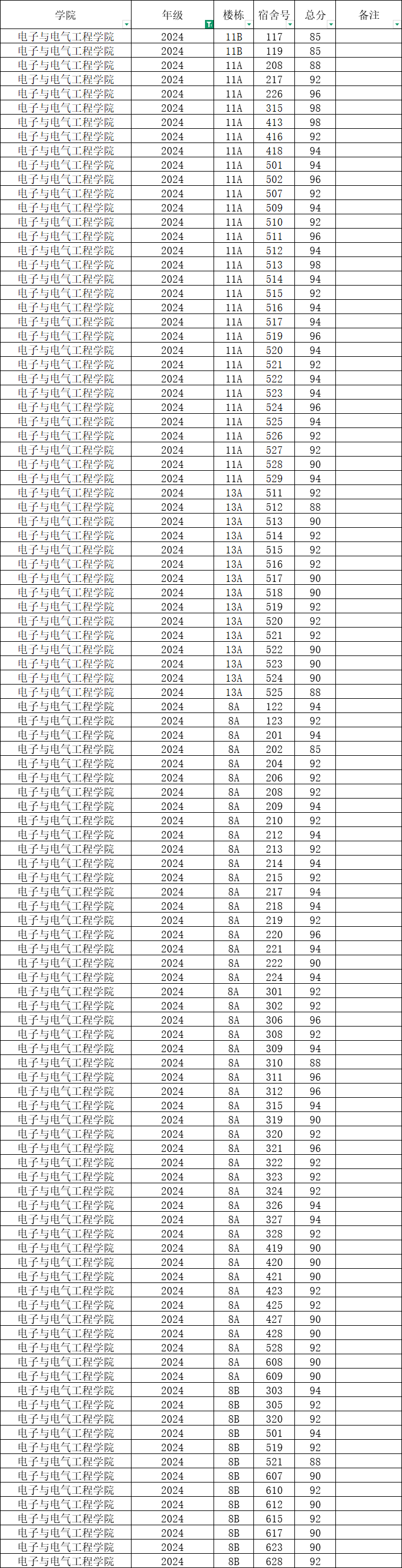根据统一安排,现将学院本学期第6周寝室公检情况公布如下