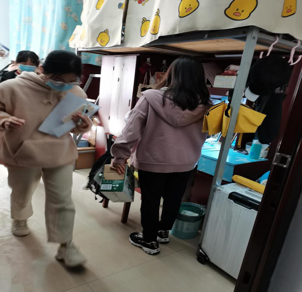此次活动在宿管会部长朱敏和志愿服务部部长骆亚星的组织下,所有志愿服务的干事们,佩戴好口罩,携带工作牌,分成8个小组,深入女同