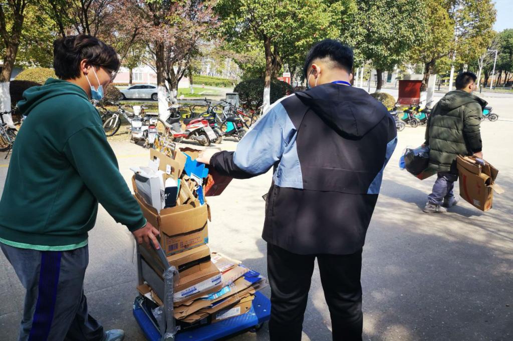 看着自己的劳动成果,志愿者们都露出满意的笑容,干事陆文广表现优异,他多次往返于宿舍楼之间完成纸箱的打包和整理工作。 电院的女干事们巾帼不让须眉。在仅有6人的情况下,顺利完成了11栋女生宿舍楼的纸箱回收活动。