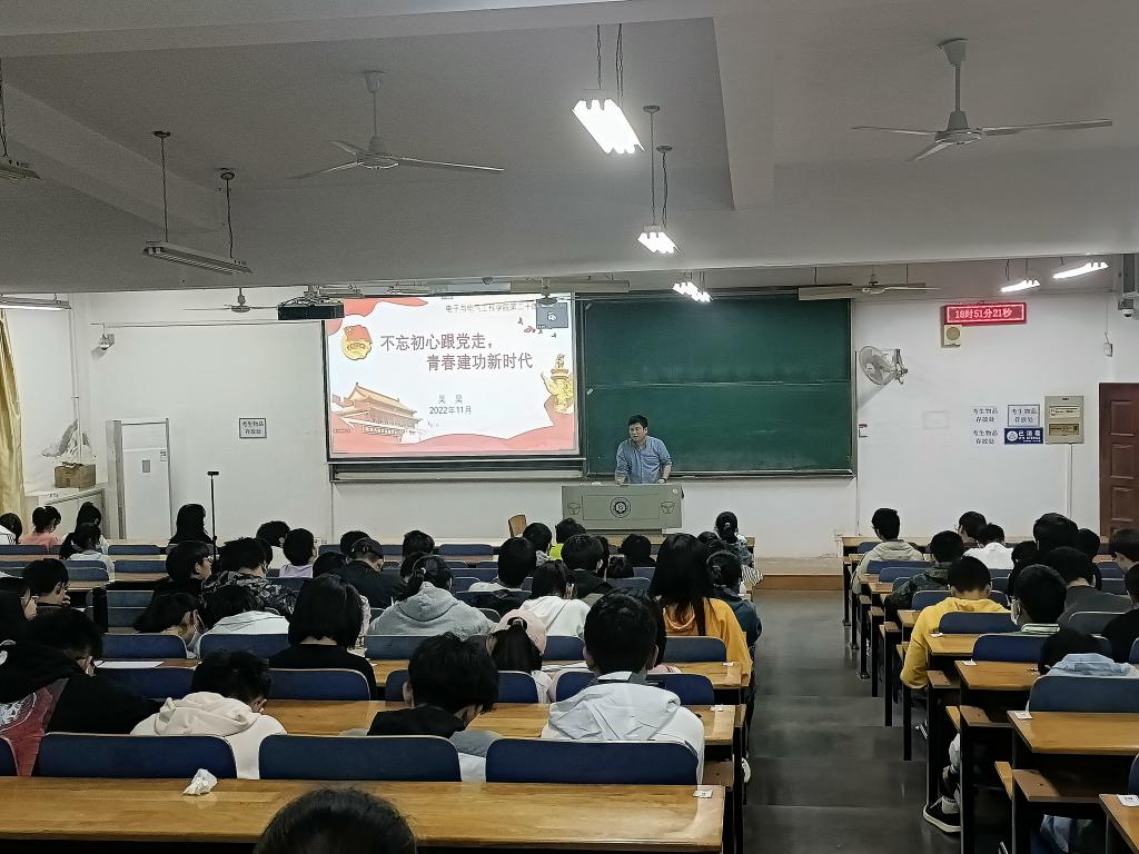 举行2022级新生主题团课,学院学工办主任、团委书记吴昊主讲,新生辅导员牟迪参加此次活动。