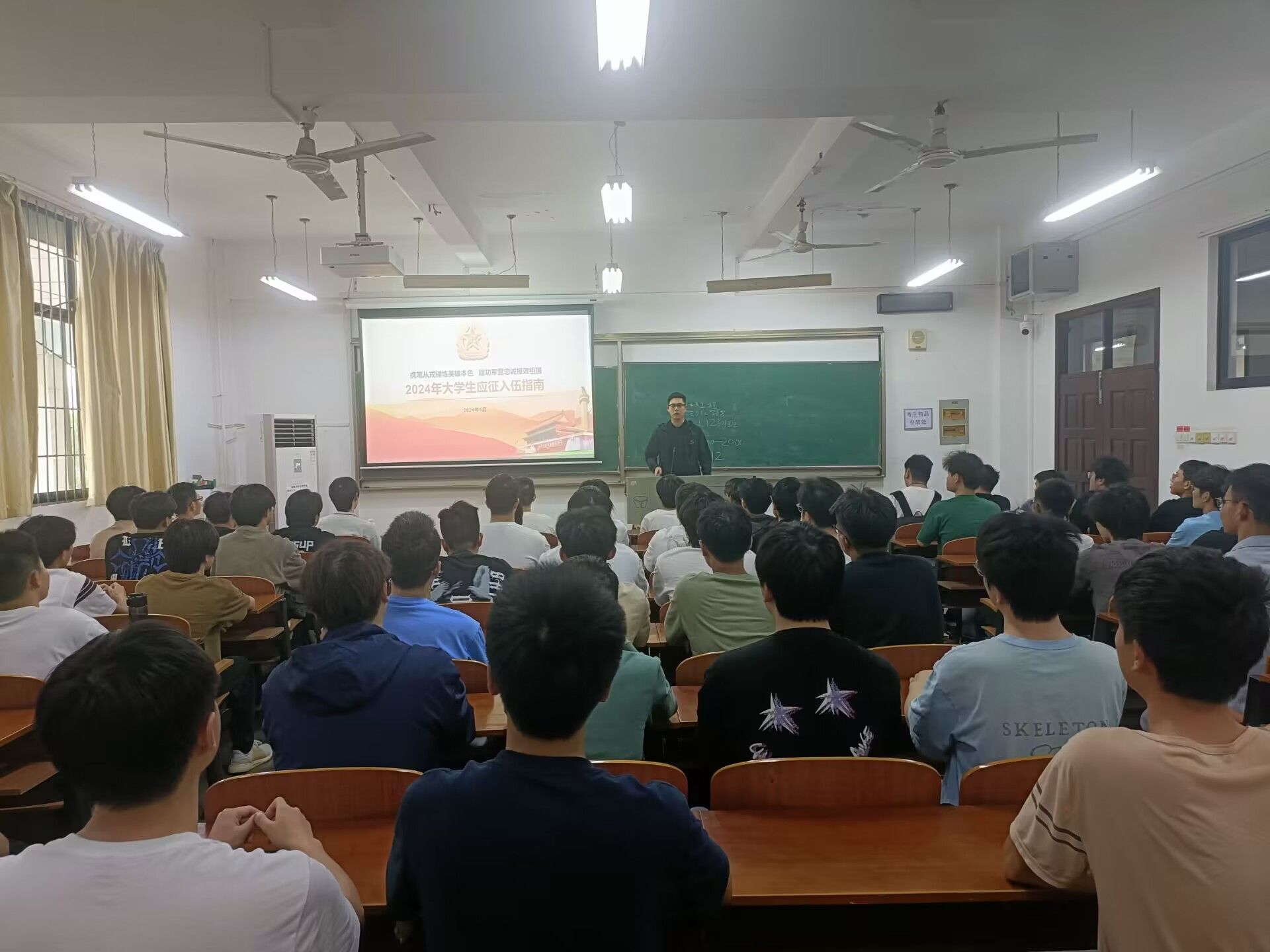 召开征兵宣传主题班会,本次班会旨在向一批有意愿参军入伍的大学生集中普及国家征兵政策以及大学生入伍优待政策,引导青年学子积极响应国家的征兵号召,为国家安全与发展贡献力量。