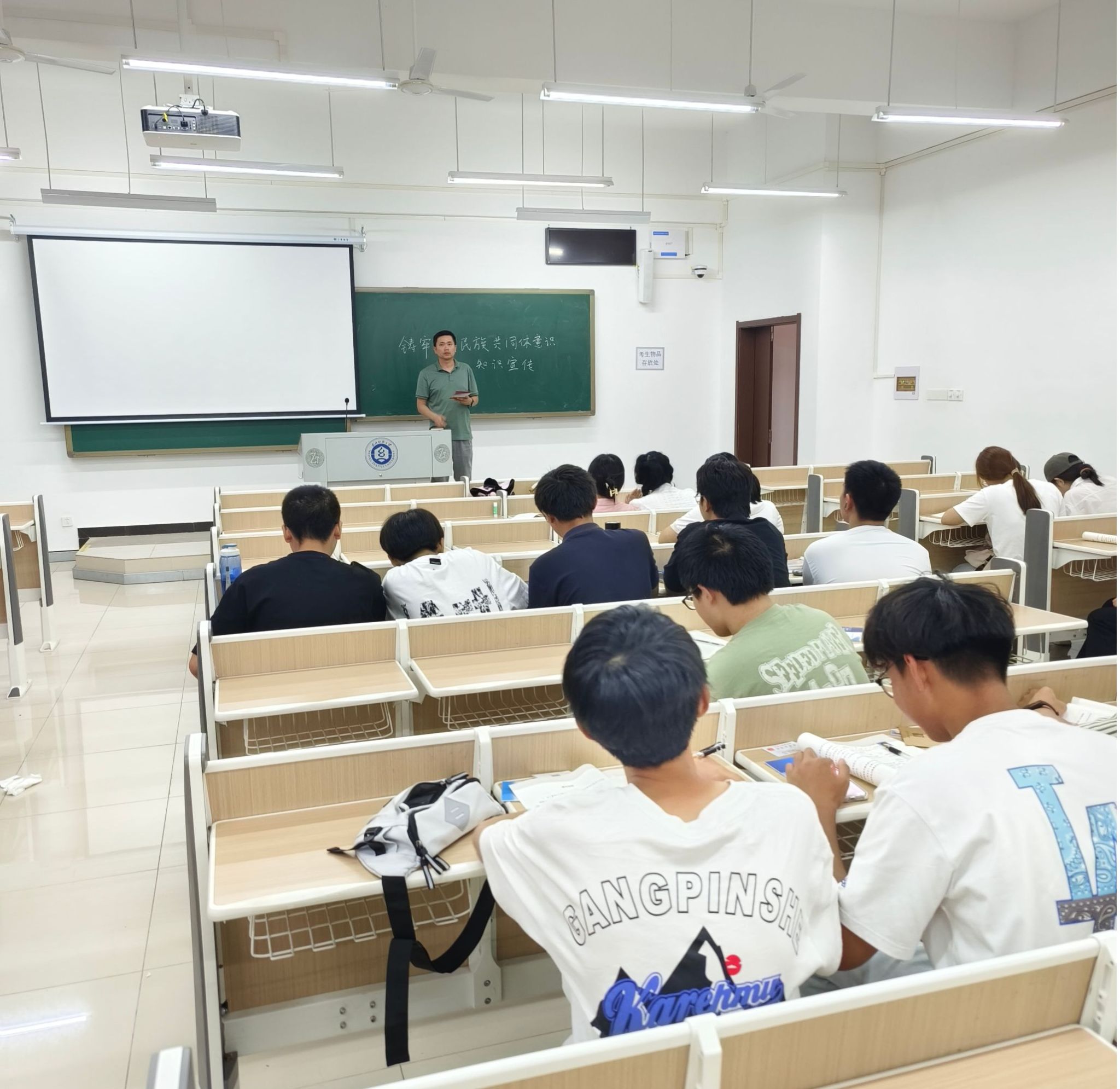 于崇志楼举行了《铸牢中华民族共同体意识知识宣传手册》学习主题班会。辅导员涂亚腾老师对新生进行了宣讲。