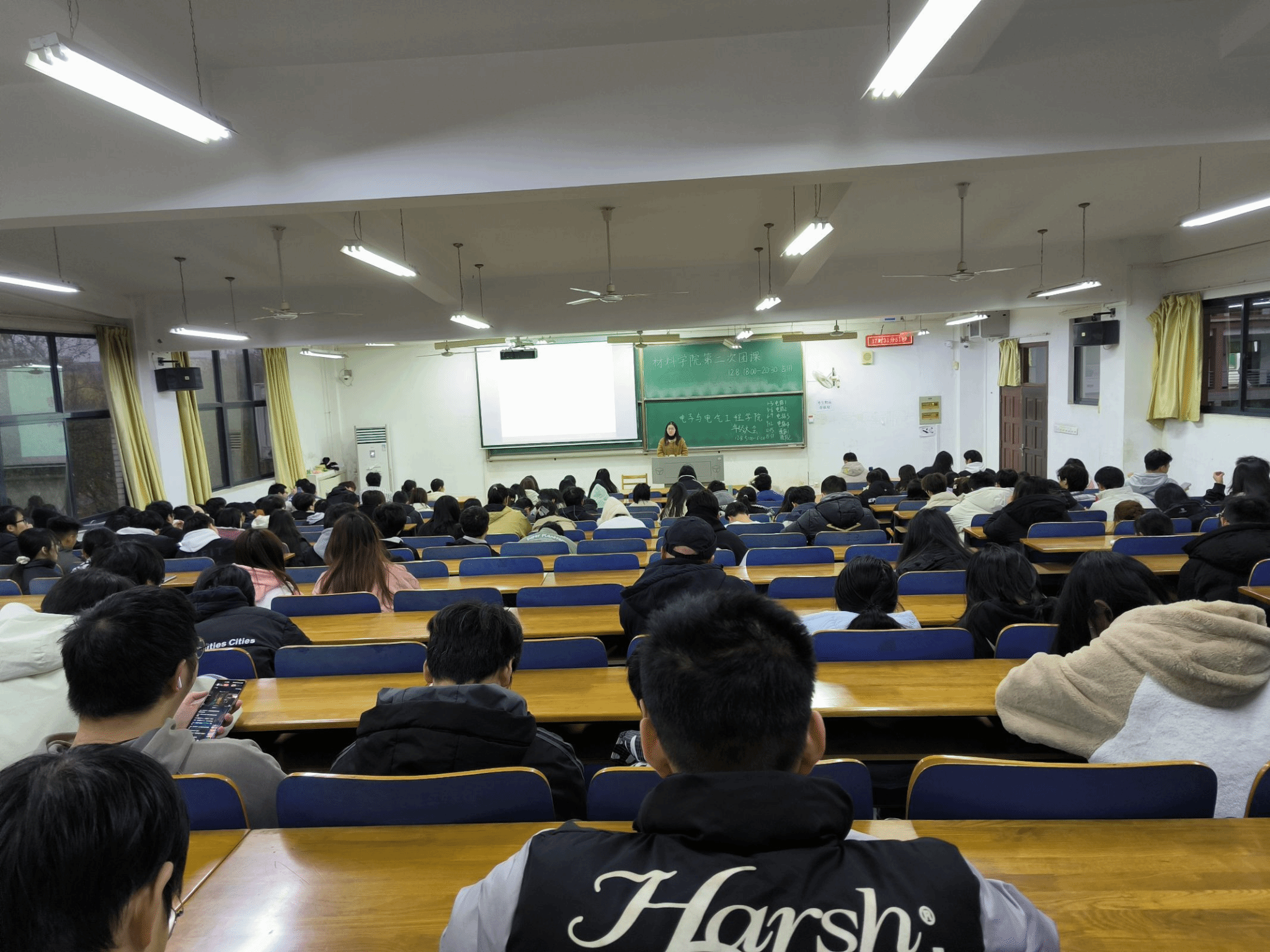 于三号教学楼116、117教室召开2023级本科生年级大会暨考风考纪教育大会。2023级全体本科生参会,会议由学院2023级辅导员陈珍老师主持。