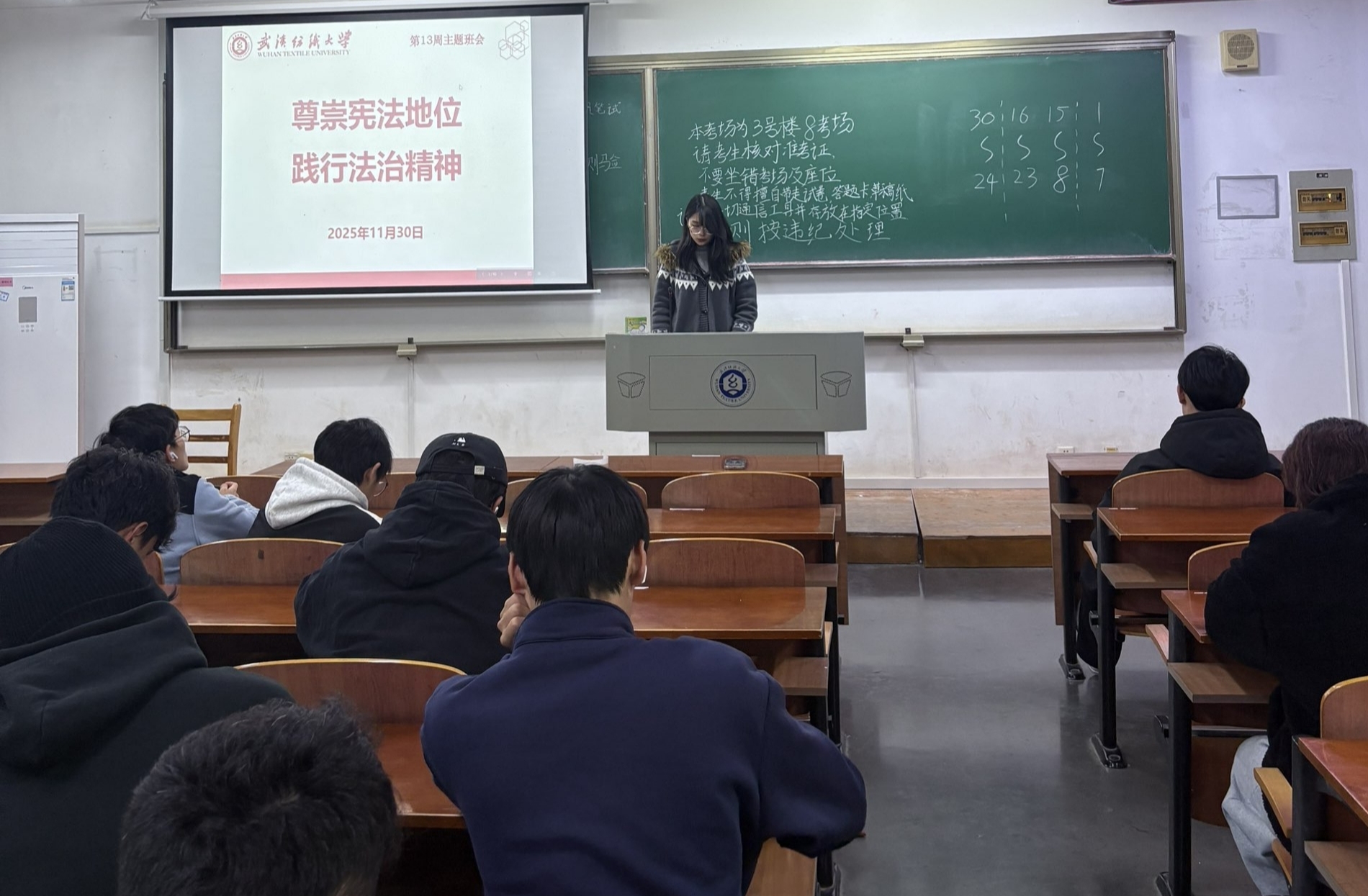 第13周主题班会举行,以“尊崇宪法地位 践行法治精神”为核心,从重要论述、宪法知识、实践践行三个维度,引导同学们增强宪法意识、筑牢法治信仰。