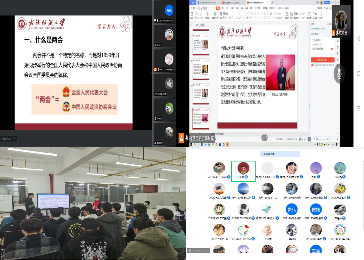 “学两会、展新篇”主题班会以线上线下并举的方式开展,各年级辅导员、班主任全程主持,全体学生参与。