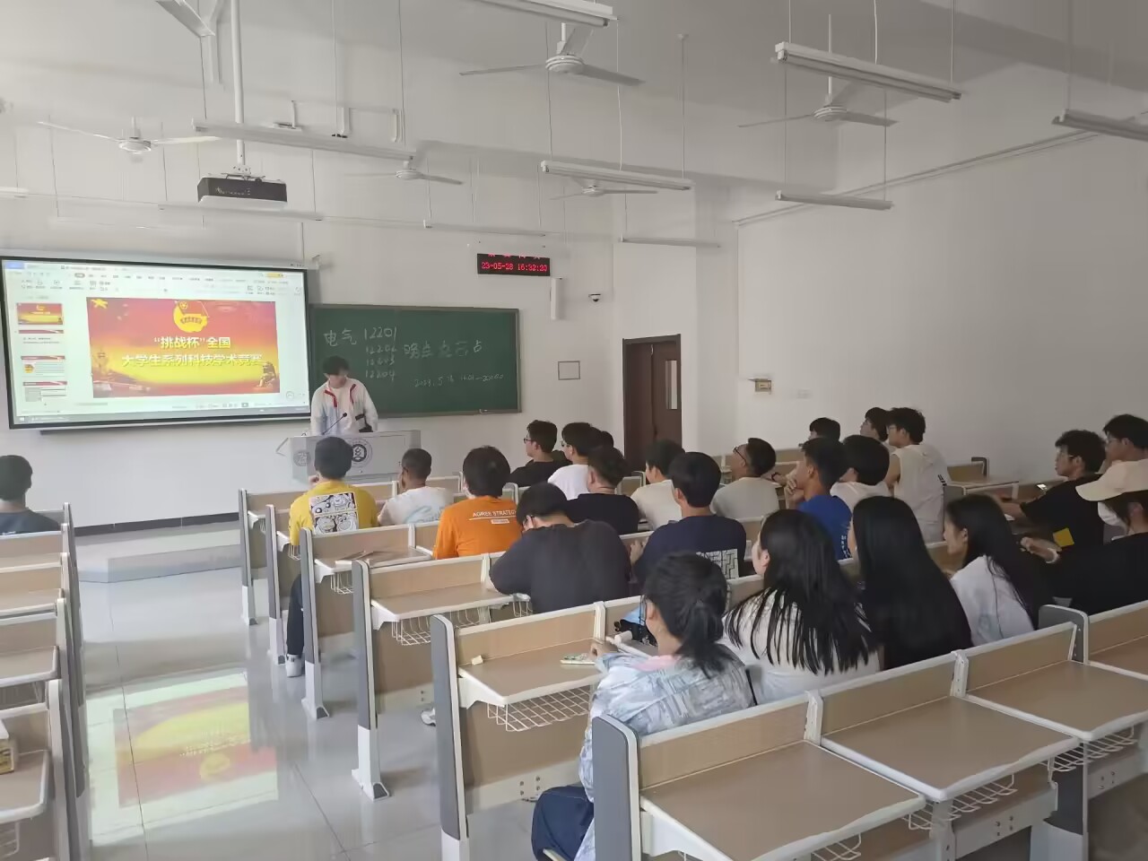 开展“‘挑战杯’全国大学生系列学术竞赛”主题班会,辅导员、班主任与副班主任主持班会。
