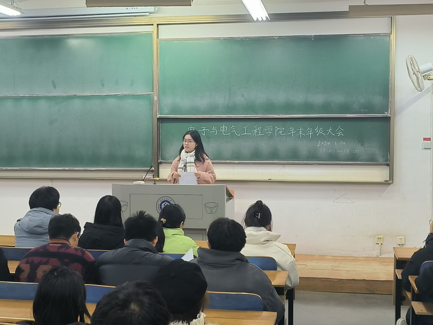 在3号教学楼115教室开展2023级本科生期末年级大会,会议由2023级辅导员陈珍主持,2023级全体同学到场参加。