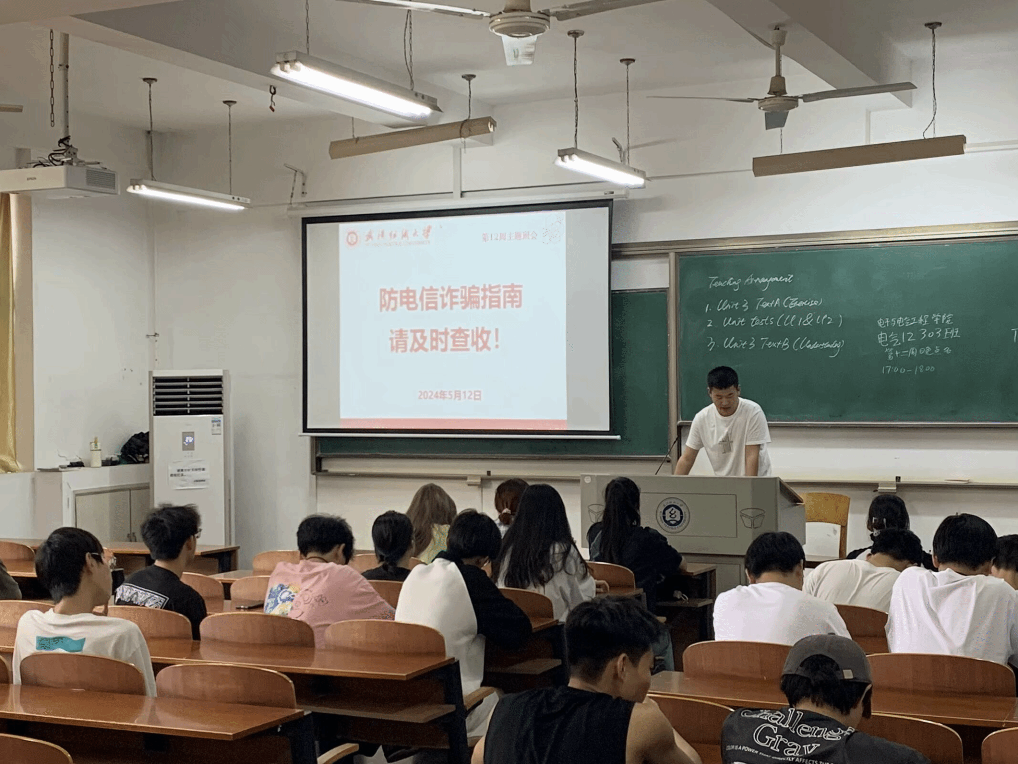 班会还对电信诈骗进行强调,用真实案例告诫同学们不要贪图小便宜,不要好心垫付资金反被骗,警惕虚假购物,势必保护好自己的身份信息,如遇诈骗及时报警,以减少或避免损失。