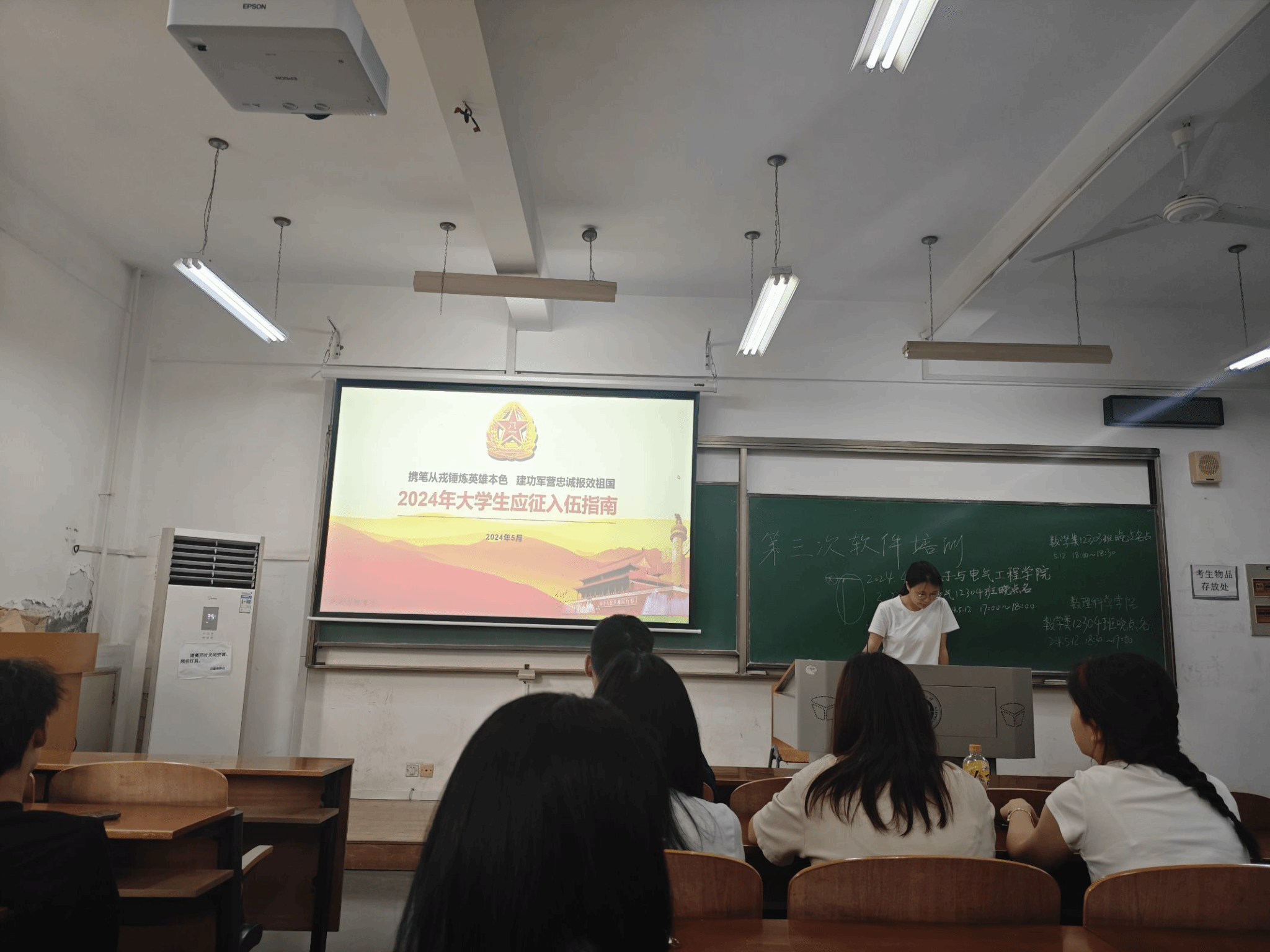班会尾声还讲述了2024年大学生应征入伍的相关内容。“坚定理想信念站稳人民立场,练就过硬本领投身强国伟业”,依法服兵役是中华人民共和国每一个公民义不容辞的责任和义务,大学生参军具有特别优惠政策,有优先优待,选拔培养,对复学升学以及退役就业有保障。征兵防诈骗,请在学校正规渠道进行征兵报名,以实现自己进入部队的理想,热爱生活积极向上,为梦想流汗拼搏,实现自我价值。