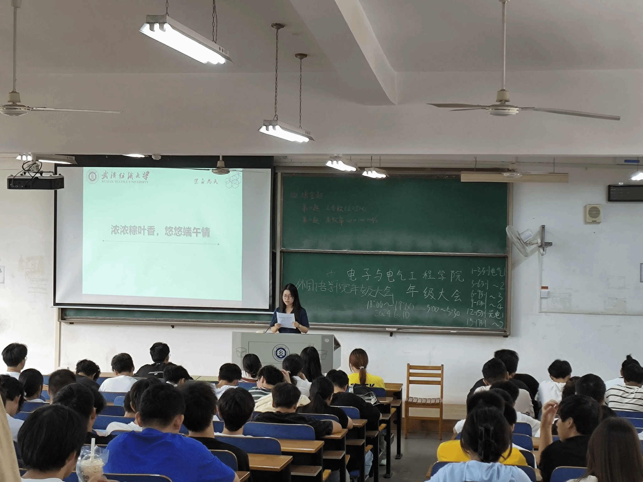晚点名大会于03-120举行。本次晚点名主题为“端午粽飘香,传承爱国情”,全体学生参与。