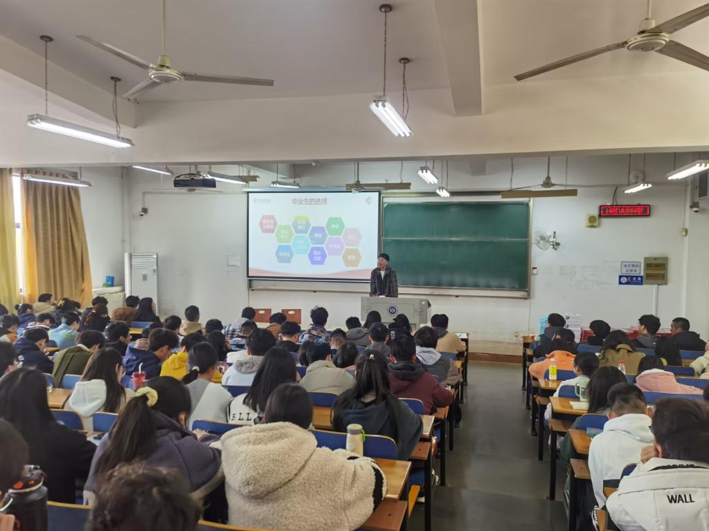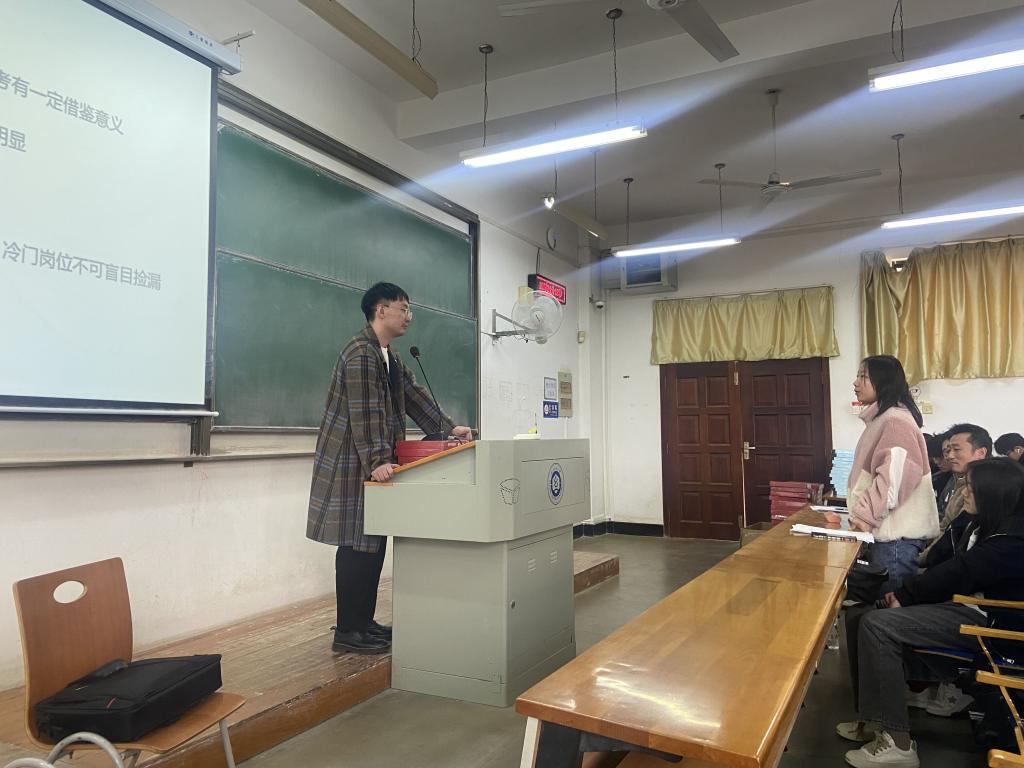 在YG03-215开展主题为“职业规划 直击公考”的大学生职业生涯规划课,学院2022级部分本科生及辅导员聆听了讲座。